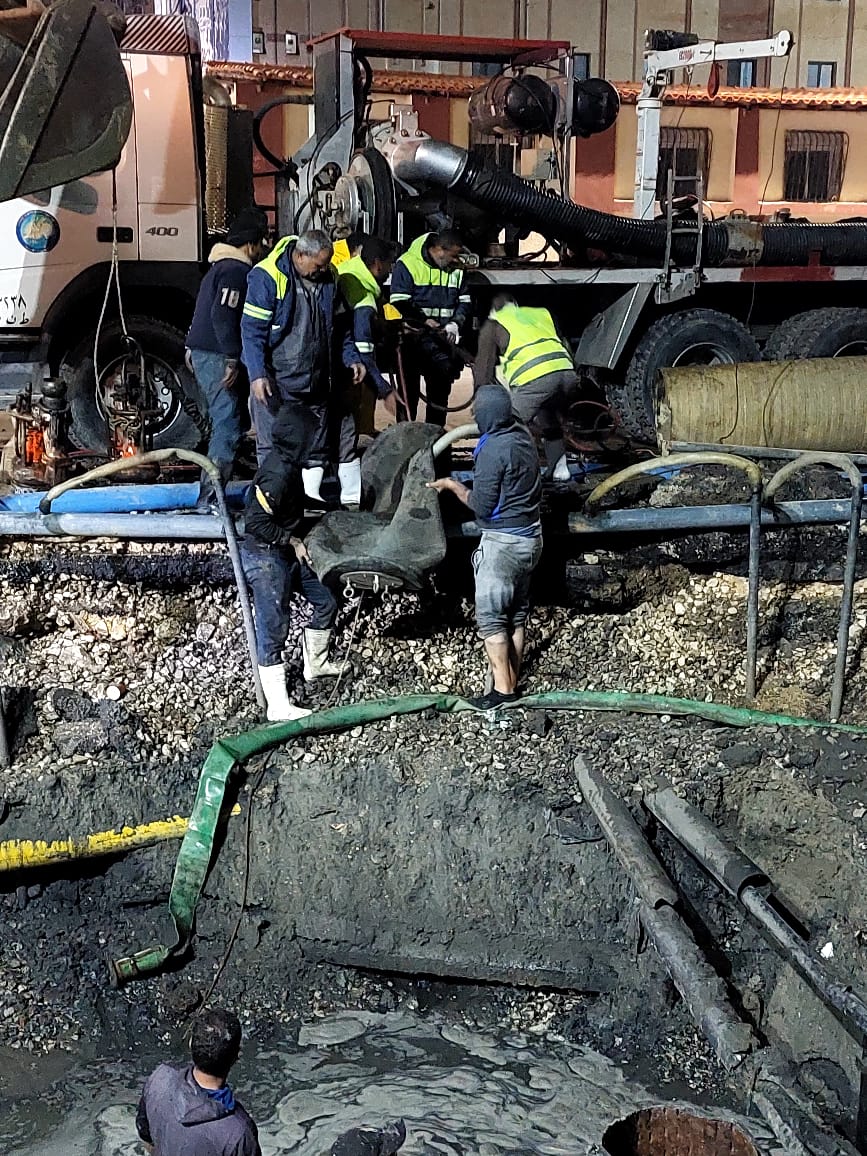 تابع اللواء عبد الحميد عصمت رئيس مجلس الإدارة والعضو المنتدب لشركة مياه الشرب والصرف الصحي بمحافظات القناة، أعمال إصلاح كسر بخط الطرد الرئيسي لمحطتى صرف صحى 8S، 1S قطر 700 مم GRP بحى المناخ أمام استاد النادى المصرى بمحافظة بورسعيد تحت إشراف المهندسة عزيزة طايع رئيس قطاع بورسعيد .
