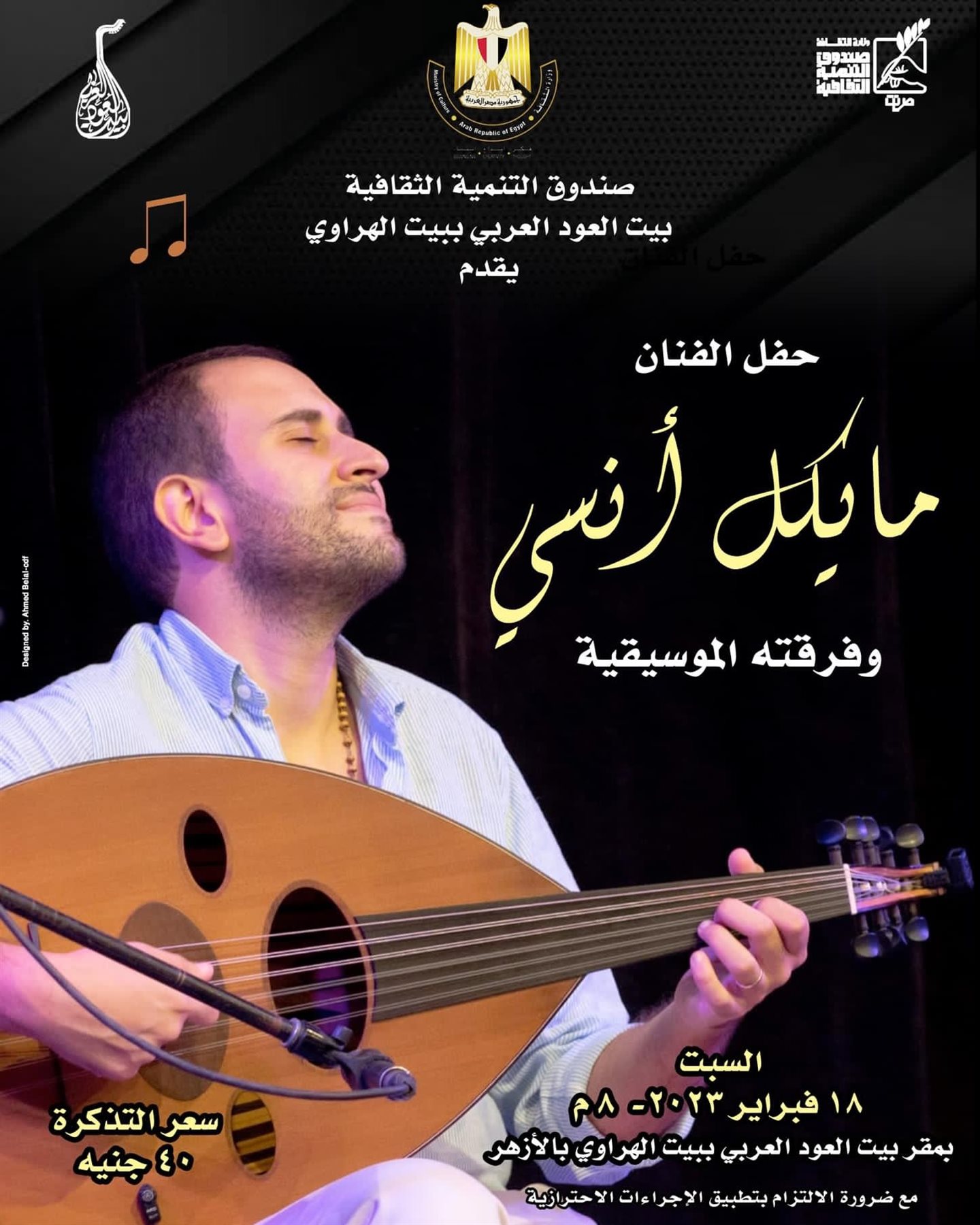 يقيم بيت العود العربي في بيت الهراوى خلف الجامع الأزهر، والتابع لقطاع صندوق التنمية الثقافية، في الثامنة من مساء السبت المقبل الموافق 18 فبراير الجاري، حفلا موسيقيا للفنان مايكل أنسى.