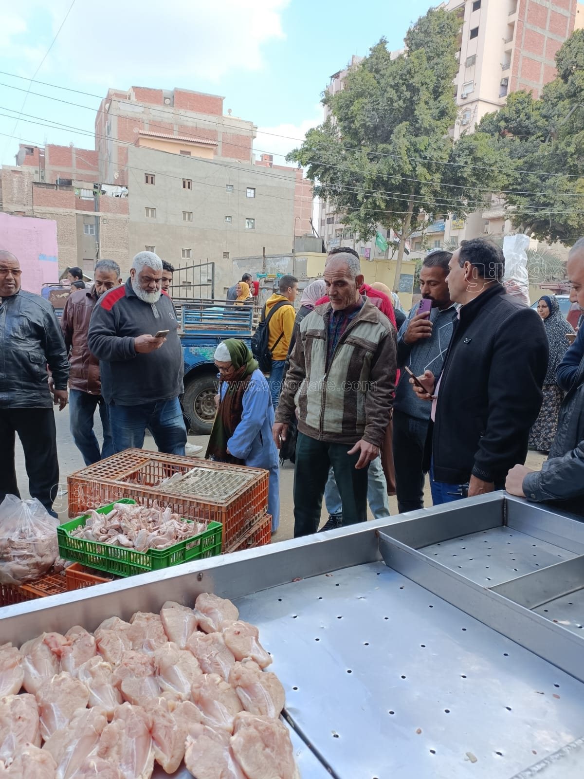شنت مباحث التموين بمديرية أمن الشرقية بالاشتراك مع الجهات المعنية الأخرى حملة تموينية مكبرة بمركز منيا القمح وأثناء التجول بالشوارع تلاحظ وجود سيارة ربع نقل محملة بكميات كبيرة من هياكل واجنحة الدجاج غير صالح للاستهلاك الآدمي أمام أحد المحال التجارية الشهيرة بالمركز.