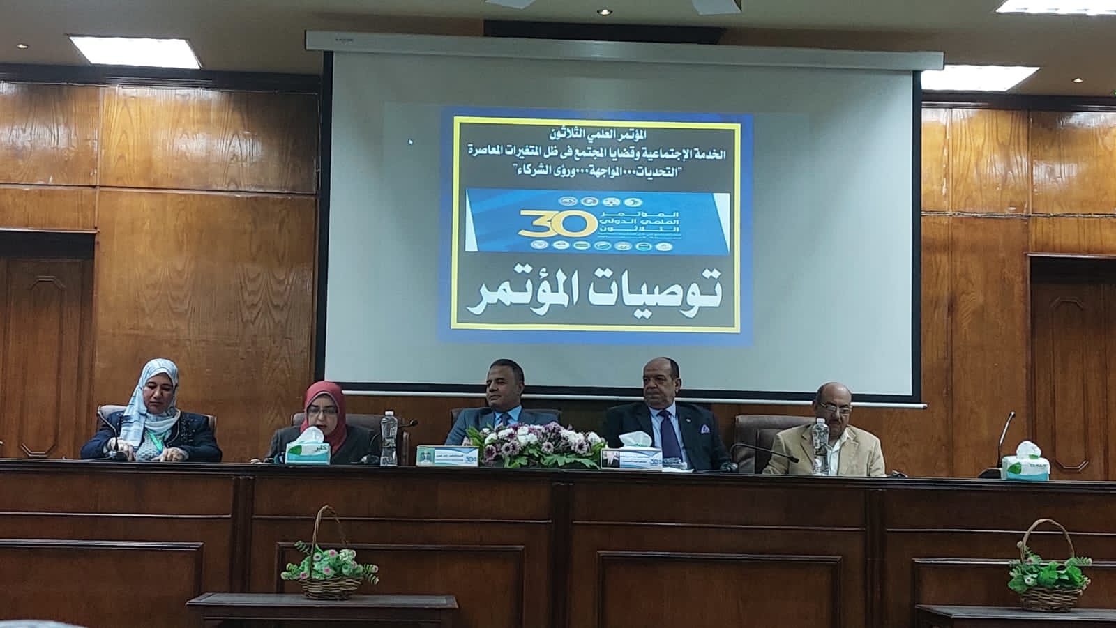 اختتم المؤتمر العلمي الدولي 30 بكلية الخدمة الاجتماعية جامعة الفيوم، (قضايا المجتمع في ظل المتغيرات المعاصرة، التحديات، المواجهة، ورؤى الشركاء)، جلساته اليوم الخميس، بعد أن شملت جلسات المؤتمر مناقشة عددا من المحاور والقضايا، التي تضمنت قضايا تعليم الخدمة الاجتماعية والتحول الرقمي، وسياسات الرعاية الاجتماعية، والتحول الرقمي، وقضايا ومشكلات الأسرة المعاصرة، والتغيرات البيئية (تحديات وتوجهات)، بالإضافة إلى تناول الممارسة المهنية للخدمة الاجتماعية ورقمنة خدمات الرعاية الاجتماعية، وقضايا التحول الرقمي ومهنة الخدمة الاجتماعية.