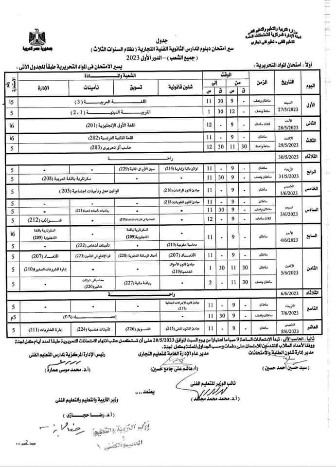 ومن المقرر أن تبدأ امتحانات الدبلومات الفنية التجارية نظام ٣ سنوات جميع الشعب للعام الدراسي ٢٠٢٣ في ٢٧ مايو المقبل.