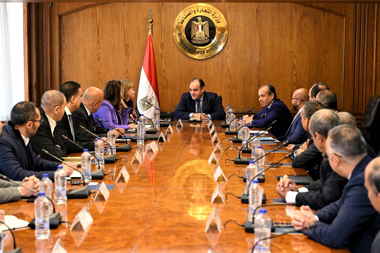 عقد المهندس أحمد سمير وزير التجارة والصناعة اجتماعًا مع عدد من كبريات الشركات الدنماركية العاملة بالسوق المصري في مجالات الأدوية والصناعات الثقيلة والأعلاف والصناعات الغذائية والنقل والشحن والبرمجيات والمنتجات الزراعية لبحث سبل تنمية أعمالهم بالسوق المصري والمساعدة في التغلب على التحديات التي تواجه هذه الشركات، وذلك بحضور سارة جوتفريدسن القائم بأعمال سفير الدنمارك بالقاهرة، وقد شارك في اللقاء الوزير مفوض تجارى يحيى الواثق بالله رئيس جهاز التمثيل التجارى.