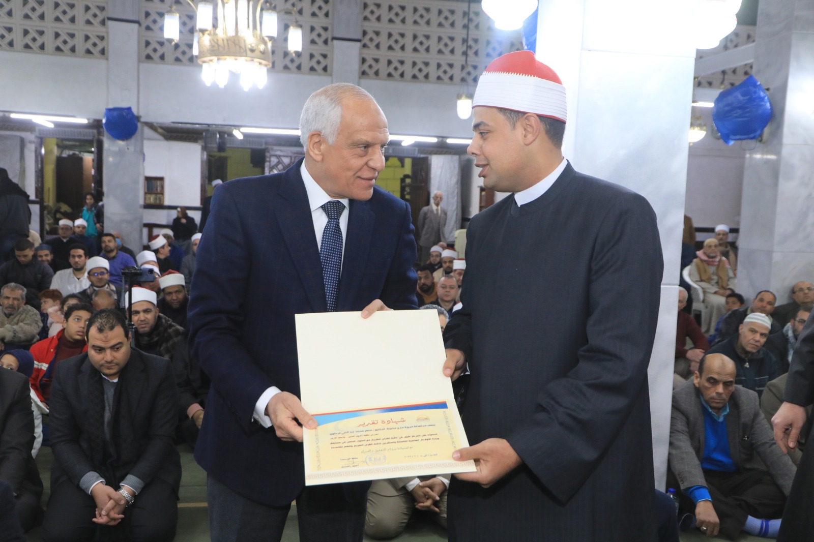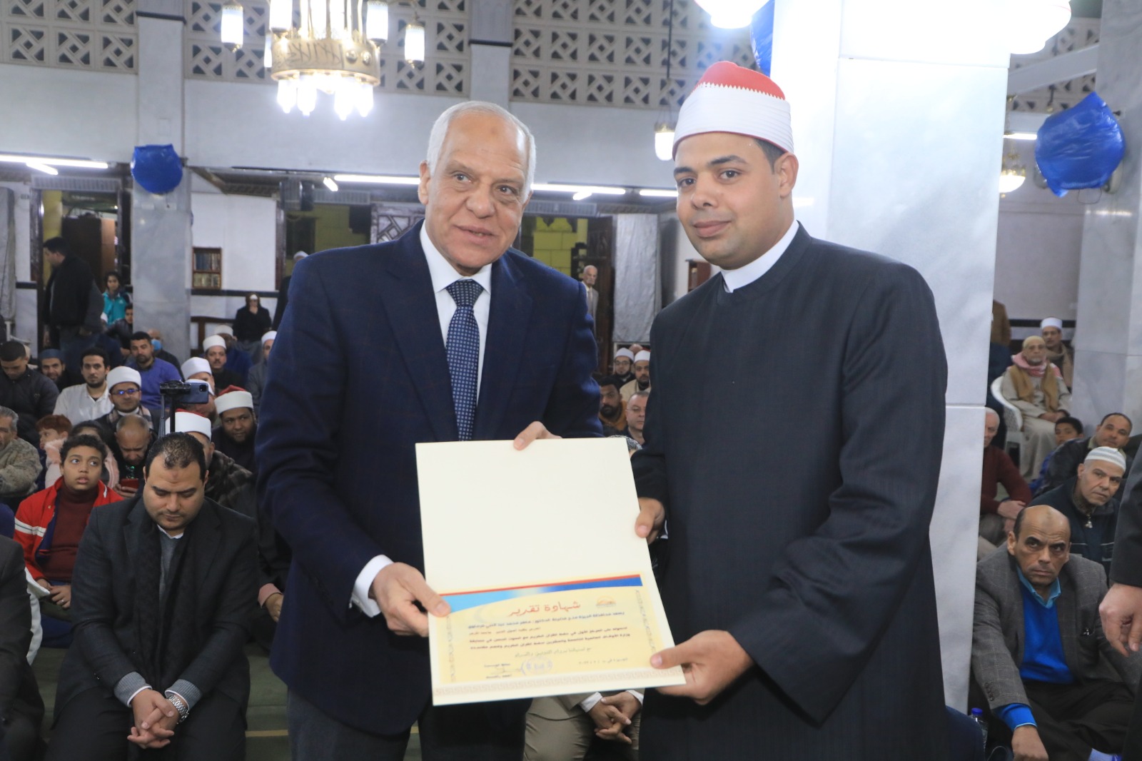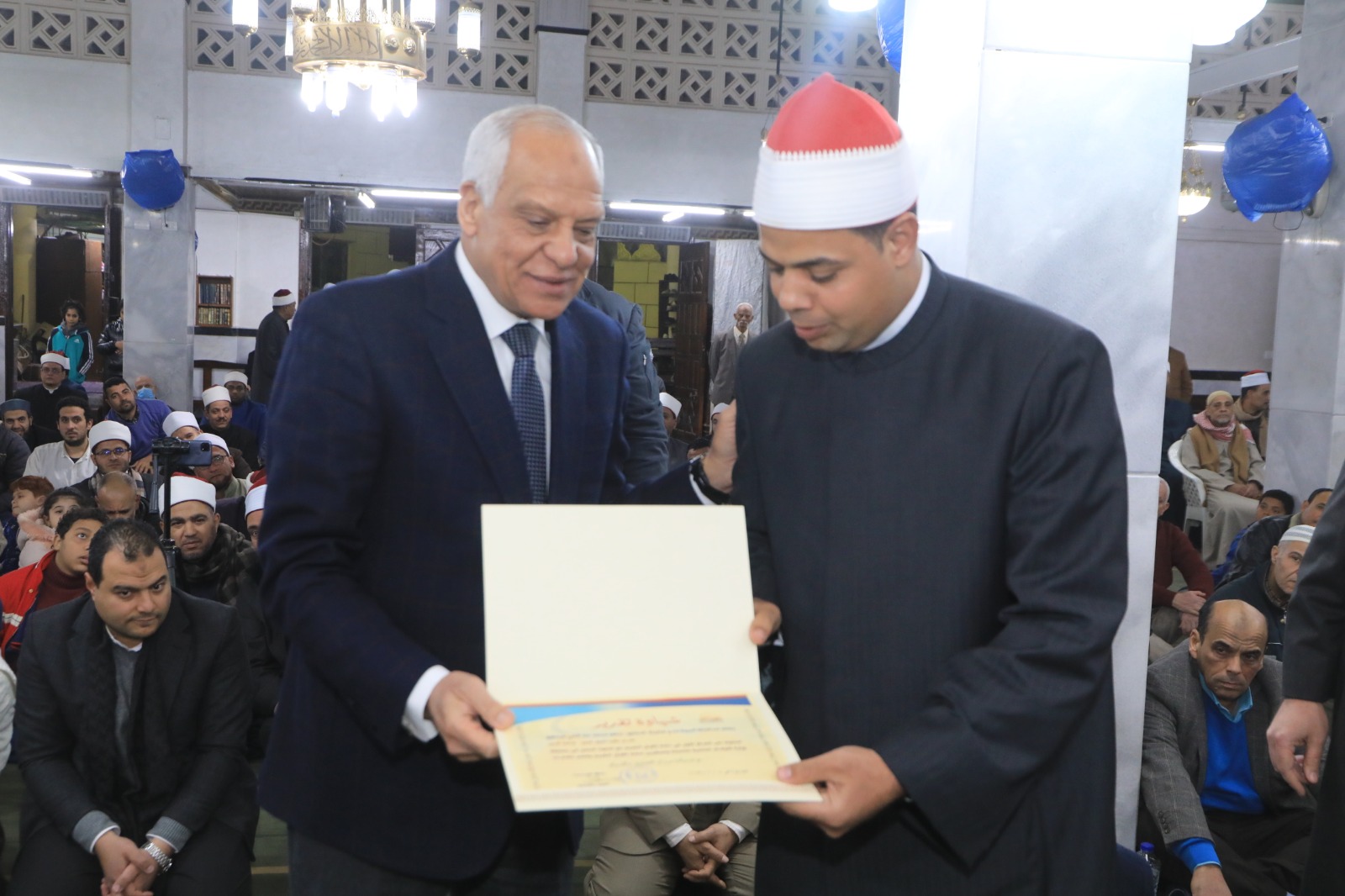 وحضر الاحتفالية إبراهيم الشهابي نائب المحافظ واللواء شاكر يونس السكرتير العام والأستاذ محمد نور السكرتير المساعد والشيخ السيد مسعد وكيل وزارة الأوقاف والسادة أعضاء مجلس النواب والشيوخ ورؤساء أجهزة التفتيش والمتابعة والسرفيس ورؤساء الأحياء والمراكز والمدن والمديريات وممثلي مديرية الأوقاف.