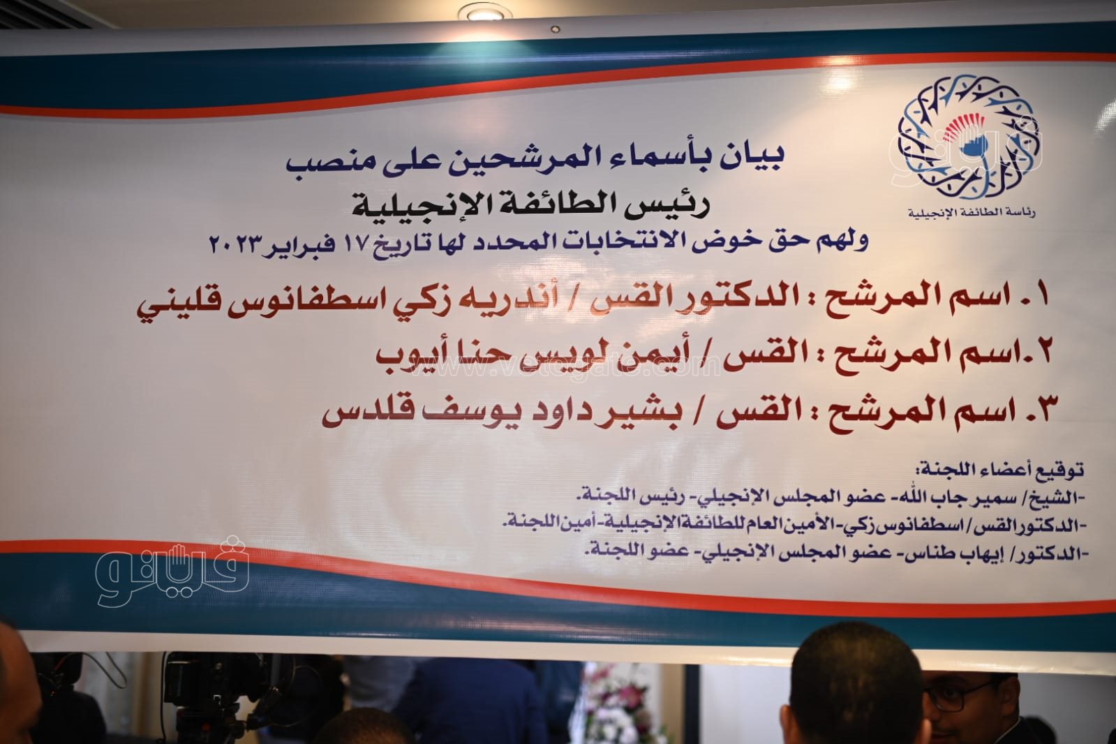 وجرى انتخاب رئيس الطائفة العاشر ونائبه، اليوم الجمعة، بحضور أعضاء المجلس الإنجيلي العام، ومن المقرر عقد المؤتمر الصحفي لإعلان نتائج الانتخابات، بمقر رئاسة الطائفة الإنجيلية في منطقة مصر الجديدة.