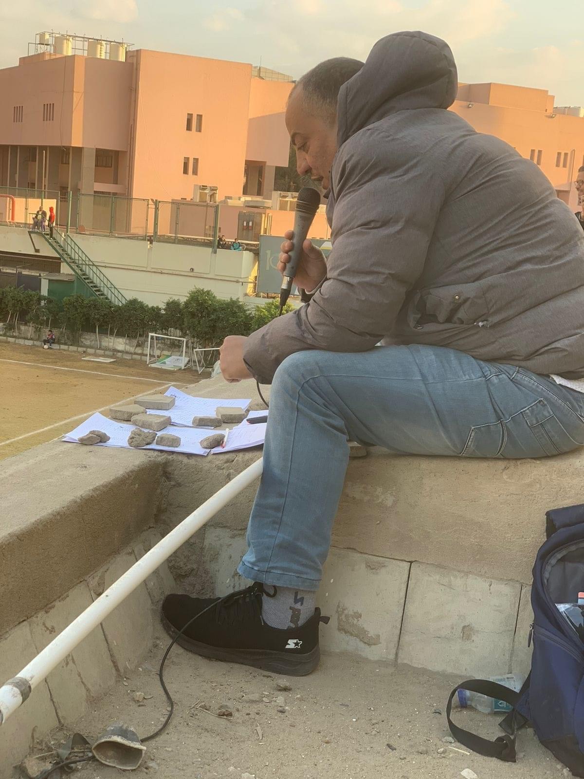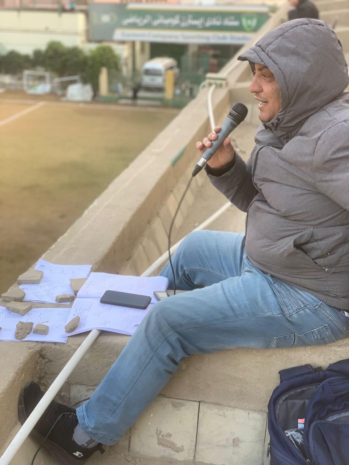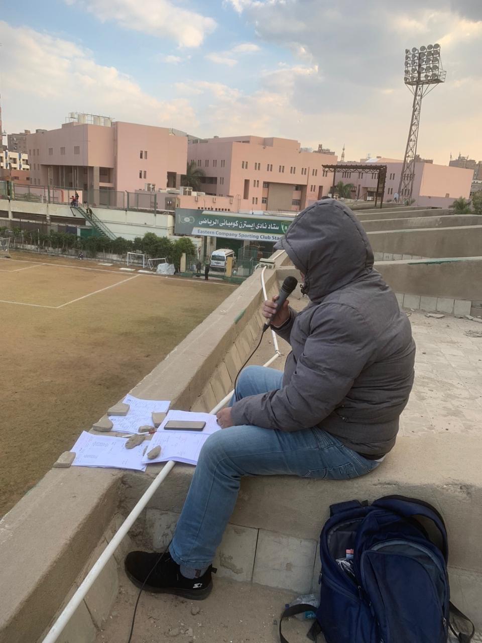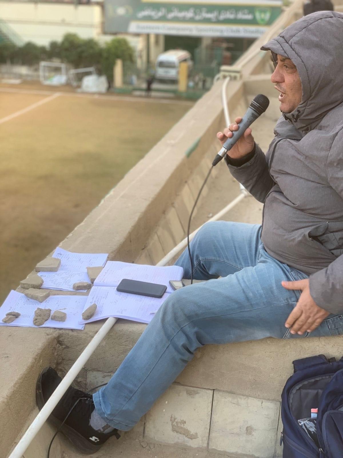 معلق نايل سبورت يذيع مباراة بالدرجة الثانية من أسطح المنازل ( صور)
