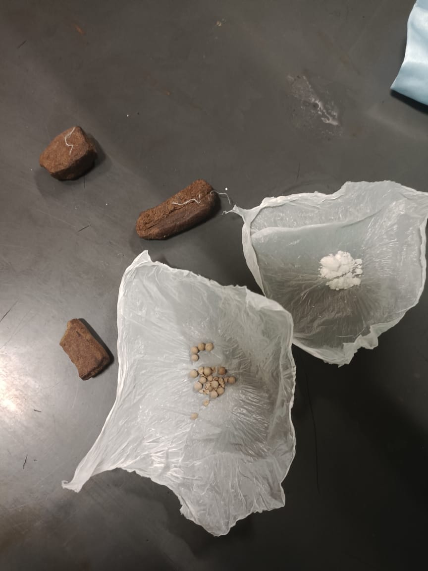 وقام أمير مطر مدير الحركة بتكليف علاء عبد الرحمن خضر مأمور الجمرك بتفتيش حقائب الراكب فتبين وجود ٣ قطع من جوهر الحشيش المخدر منهم قطعة مخفاه أسفل ساعة يد داخل علبتها ولفة بها كمية من بودرة الكوكايين ولفة أخري بها ١١ بذرة لنبات الماريجوانا المخدر ومطواة بها اثار تقطيع الحشيش أفاد تقرير ادارة الحماية الوطنية بالمطار انه محظور حيازتها طبقا للقانون ٣٩٤ لسنة ١٩٥٤.