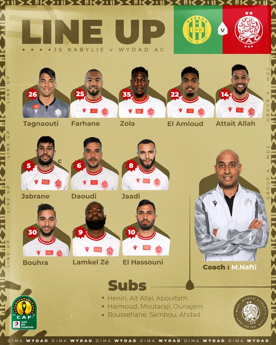 دوري أبطال أفريقيا، تشكيل مباراة شبيبة القبائل ضد الوداد