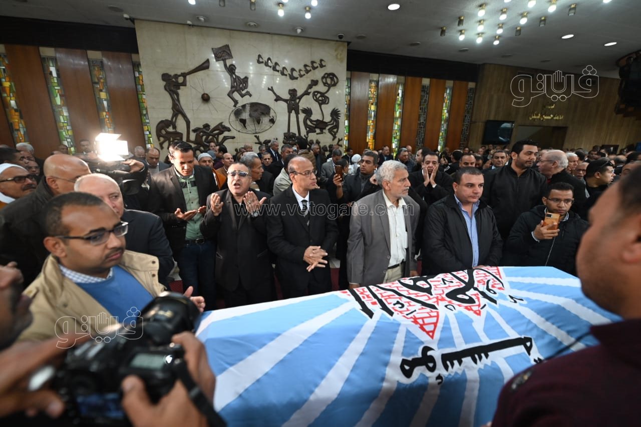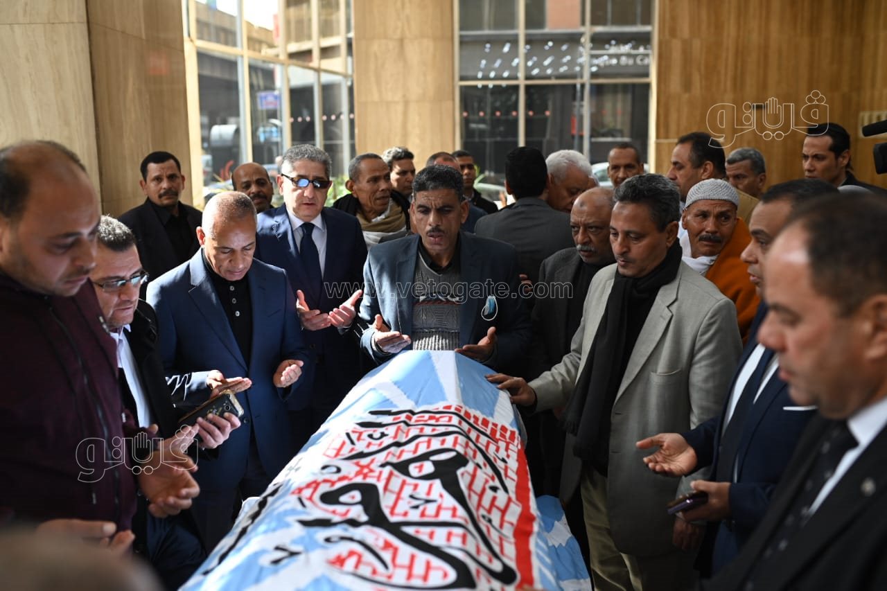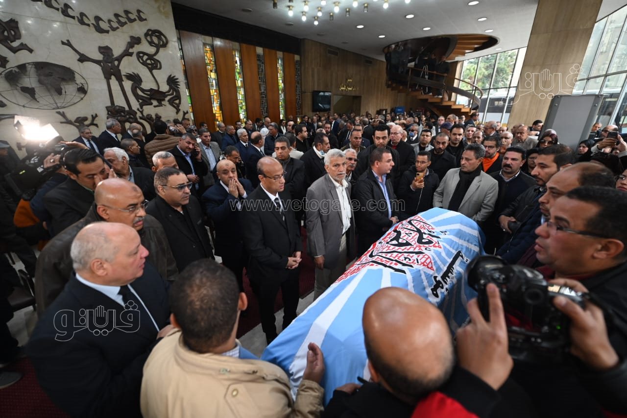 وكان في استقبال الجثمان عدد كبير من قيادات وصحفيين مؤسسة الأهرام، على رأسهم الكاتب الصحفي عبد المحسن سلامة، رئيس مجلس إدارة مؤسسة الأهرام، والكاتب الصحفي علاء ثابت، رئيس تحرير جريدة الأهرام، والإعلامي أحمد موسى، والكاتب الصحفي حسين الزناتي، رئيس تحرير علاء الدين.
