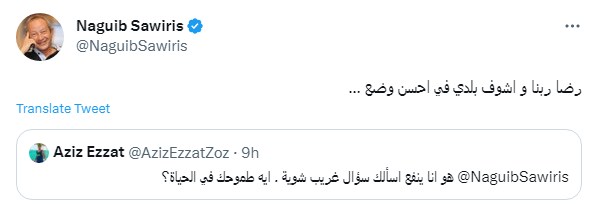 وكتب نجيب ساويرس تغريدة على تويتر قال فيها: "رضا ربنا وأشوف بلدي في أحسن وضع…".