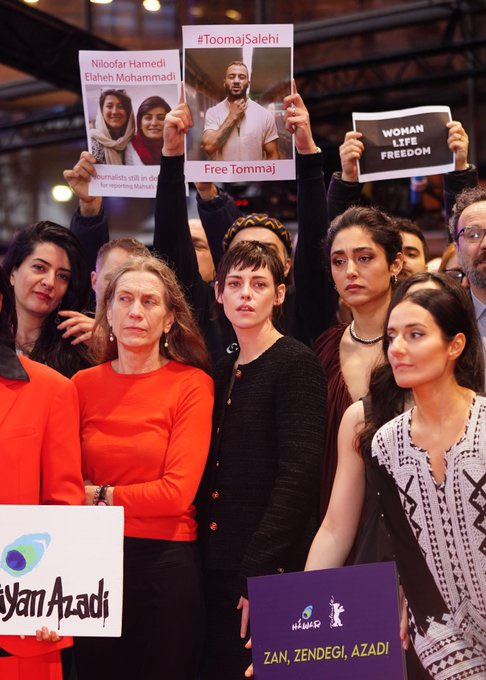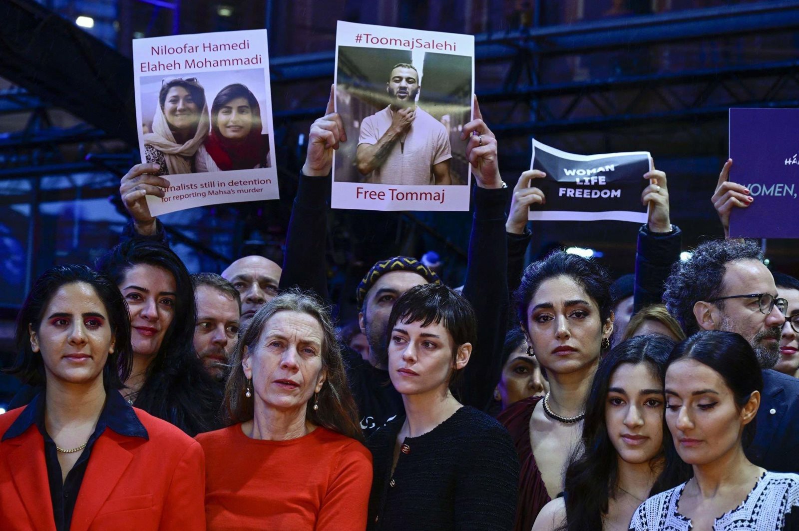 مهرجان برلين، شهدت السجادة الحمراء للمهرجان العالمي في فاعليات اليوم الثالث، وقفة نسائية للتضامن مع الاحتجاجات التي تشهدها دولة إيران.