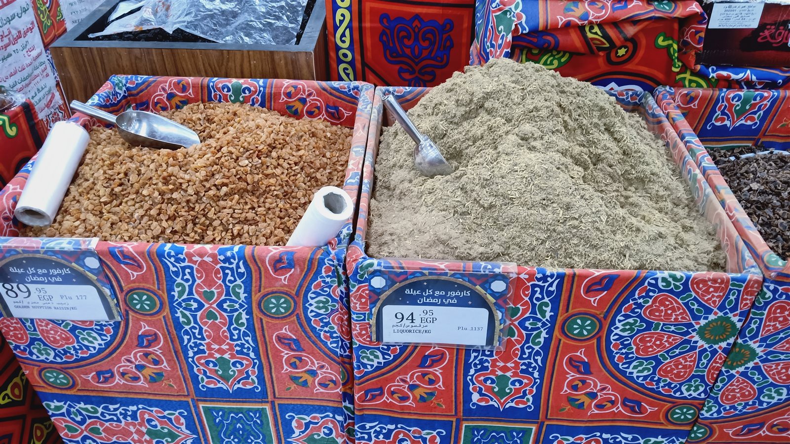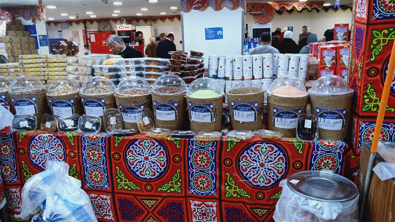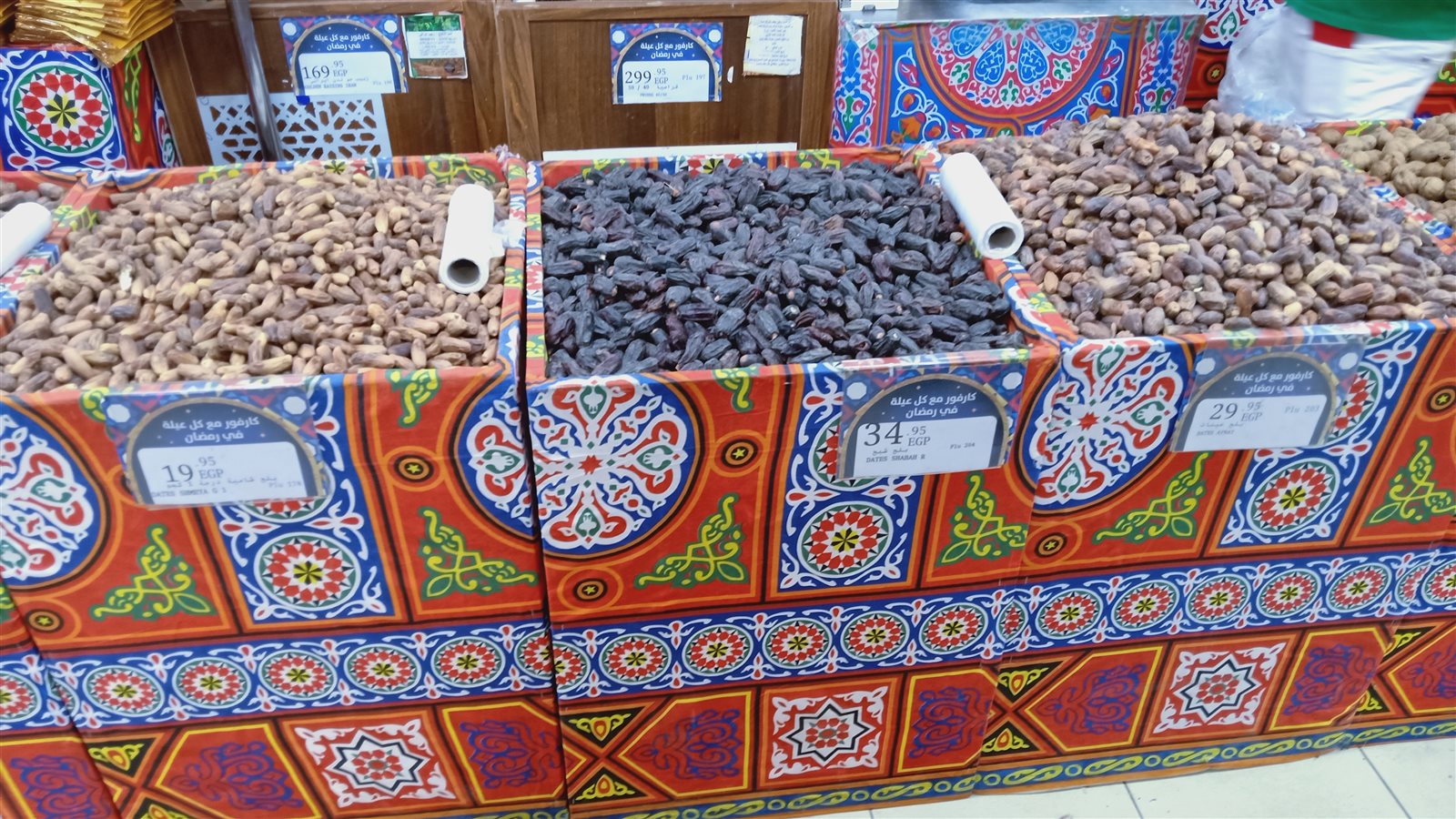 وتختلف وتتنوع السلع التي يقبل عليها المصريون استعدادًا لشهر رمضان ولكن تبقى بعض هذه المنتجات أساسية في كل بيت مصري مثل؛ قمر الدين الذي تفاوت سعره في المحال وتراوح من ١٨ جنيهًا إلى ١٠٤.٩٥ جنيه لل٤٠٠ جرام، والتمر الهندي كذلك والذي بدأ من ٢٨.٩٥ جنيه إلى ٣٦ جنيهًا لل٤٠٠ جرام.
