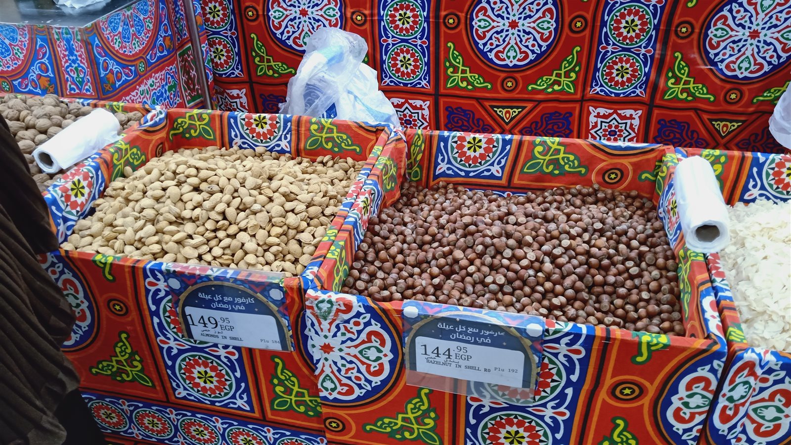 ووفرت أحد المحال التجارية كراتين أو أطباق كبيرة بها ياميش رمضان وكانت أسعارها تتراوح من ٥٧٥ جنيهًا إلى ٢٥٠٠ جنيه بأحجام وأشكال مختلفة.