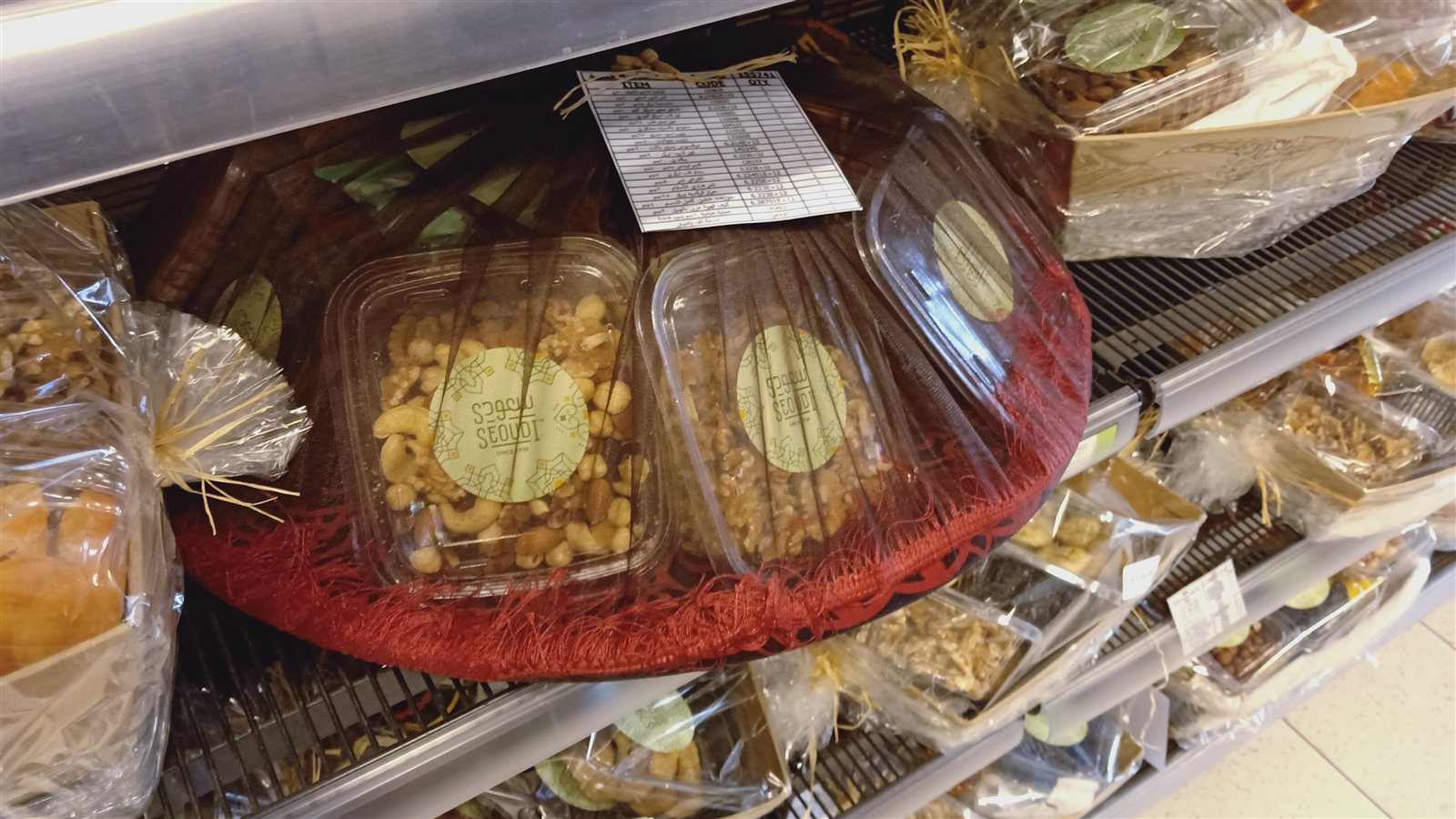 ووجدنا القراصيا بـ ٨٠ جنيهًا لل٢٥٠ جرامًا أما المكسرات فمنها المعلب ومنها بالوزن وكانت الآتي: