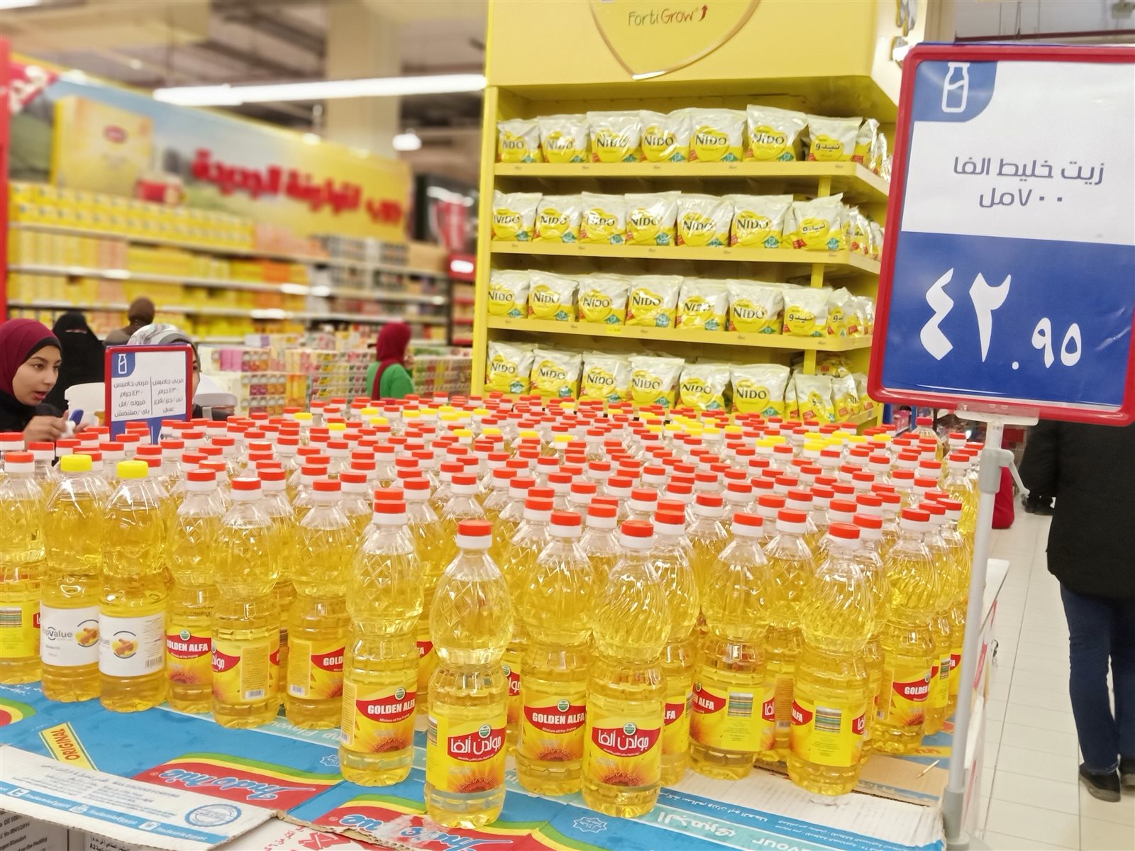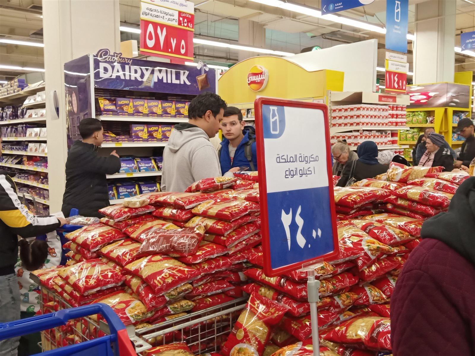 ورصدت كاميرا "فيتو" إقبالًا كبيرًا من المواطنين على السلع الأساسية أكثر منها على ياميش رمضان فالعروض التي تنظمها هذه المحال بمناسبة شهر رمضان المبارك تدفعهم لشراء بكثر حتى اضطرت بعضها إلى وضع حد أقصى ٢ كيلو للفرد.