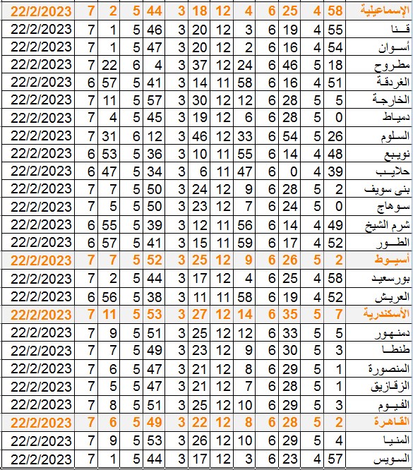 مواقيت الصلاة اليوم الأربعاء 22- 2 - 2023 في القاهرة والمحافظات