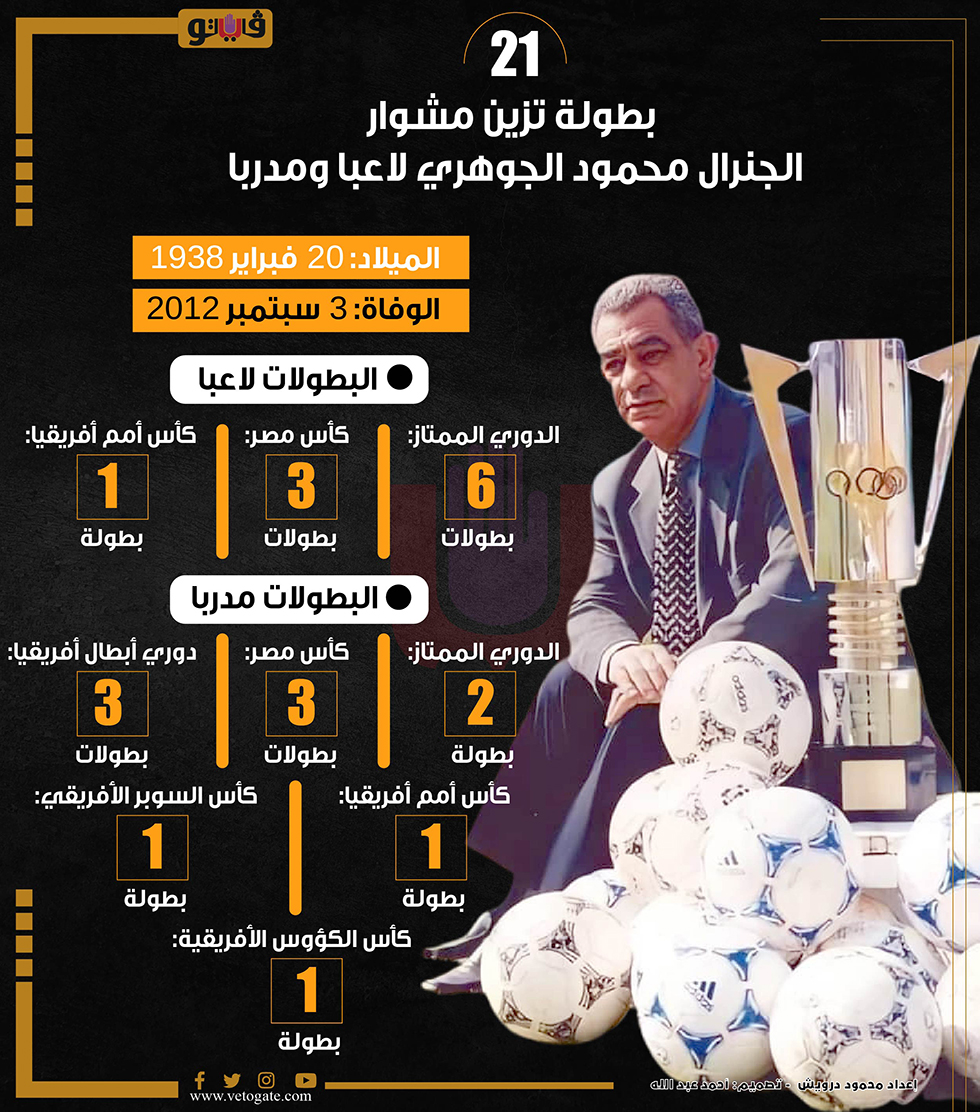 21 بطولة تزين مشوار الجنرال محمود الجوهري لاعبا ومدربا (إنفوجراف)