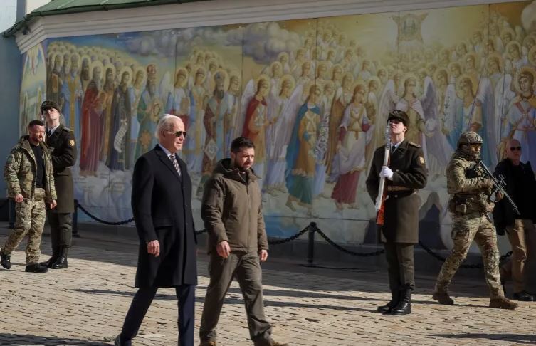 ويأتي ذلك بعد جولة مفاجأة أجراها بايدن مع زيلينسكي في شوارع العاصمة كييف، وذلك بمناسبة مرور عام على الحرب الروسية الأوكرانية.