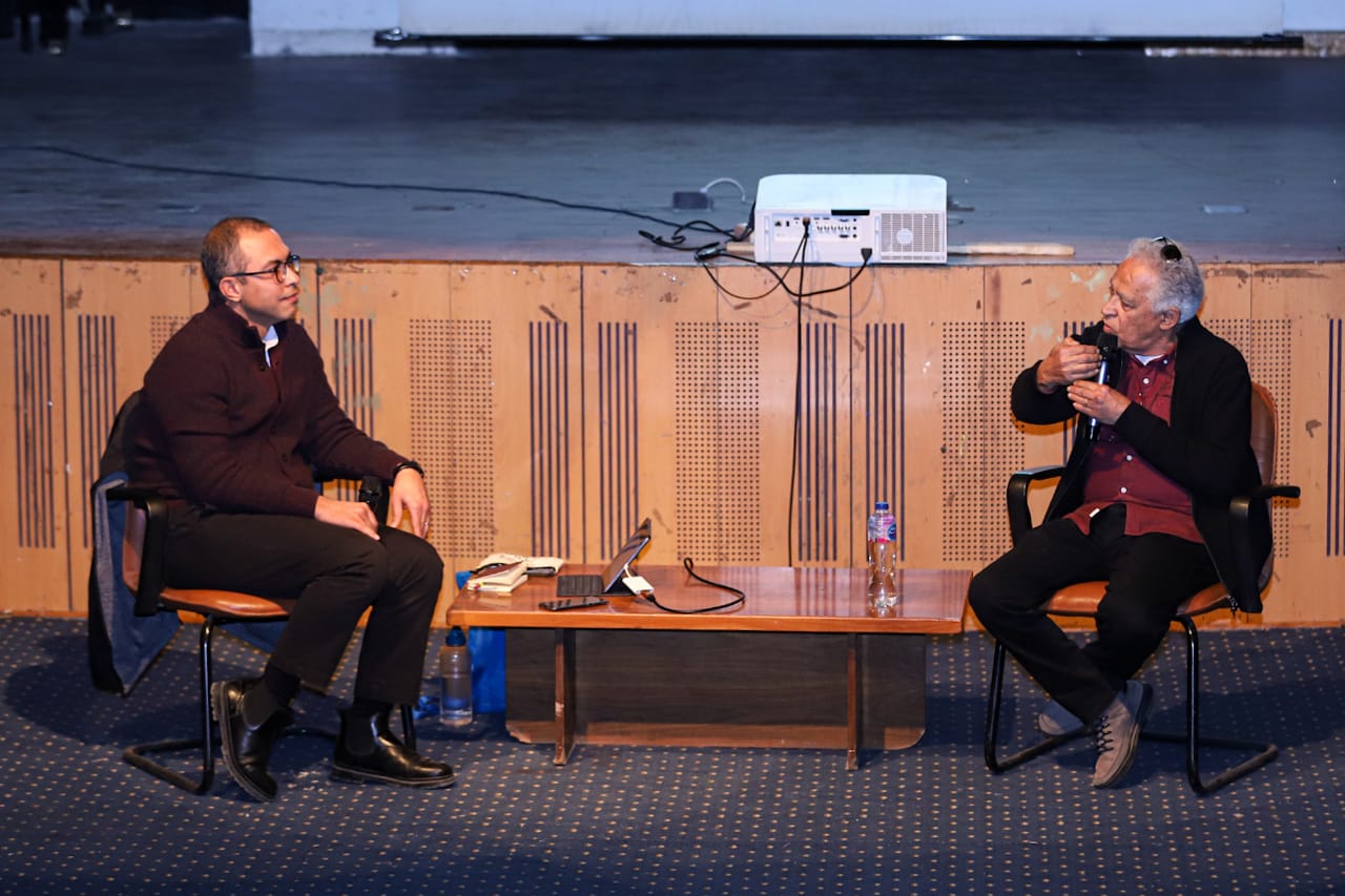 وتوافد الجمهور بأعداد كبيرة لحضور ماستر كلاس أنسي أبو سيف، والتواجد مبكرا قبل موعد الندوة للاستفادة من تاريخه الفني.