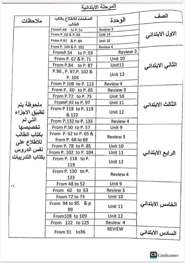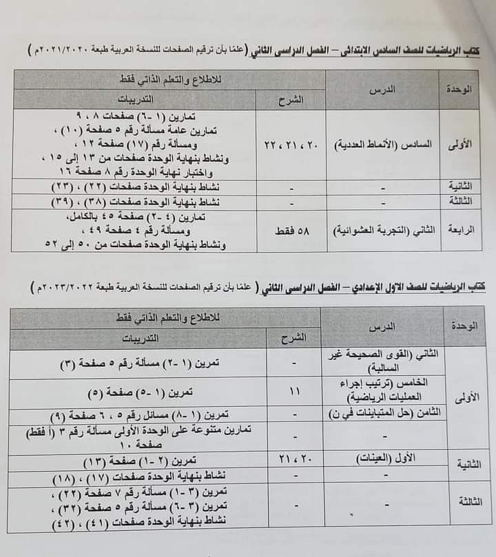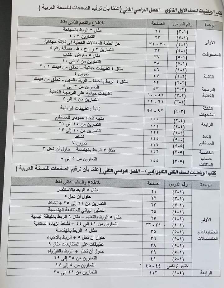 تخفيف مناهج التيرم الثاني، الأجزاء المحذوفة من المواد (مستندات)