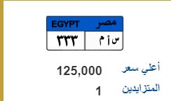 كما طرح لوحات "أ م ل 8888" بسعر 100 ألف جنيه، "ر ه ف 1111" بسعر 120 ألف جنيه، "أ ه م 5" بسعر 455 ألف جنيه، " ن أ ن 777" بقيمة 125 ألف جنيه.