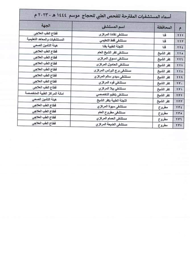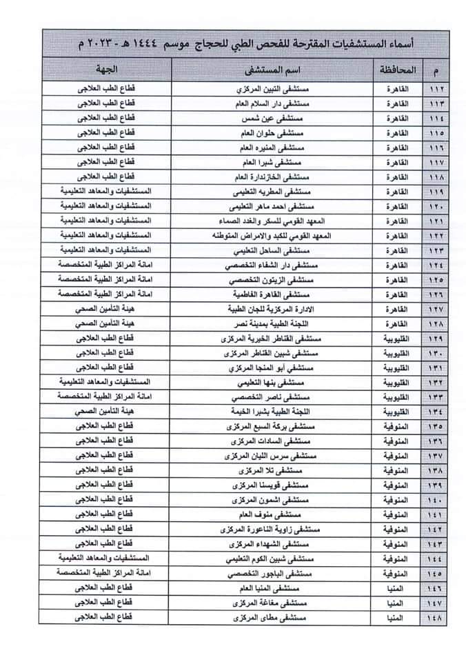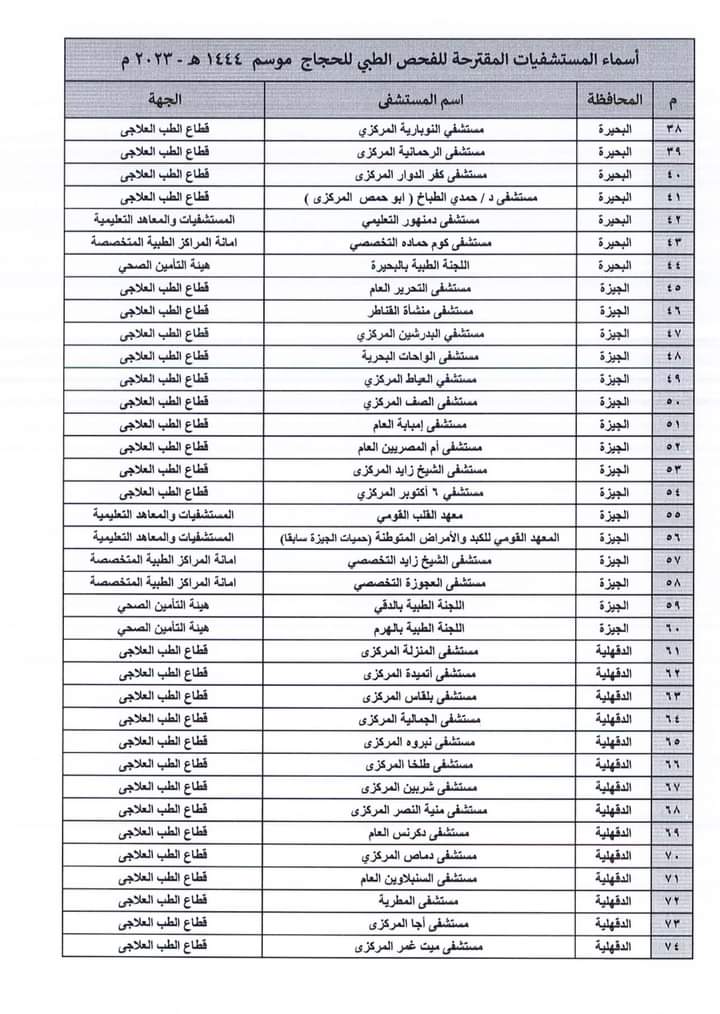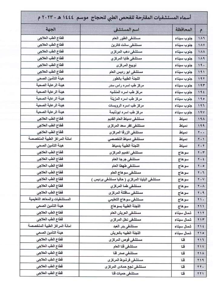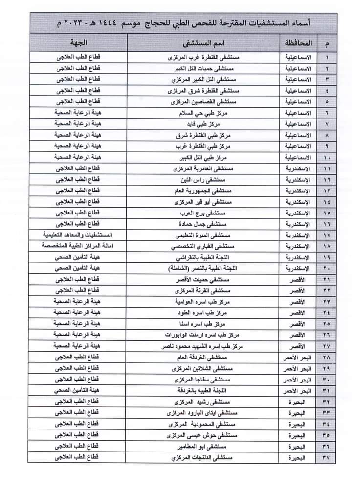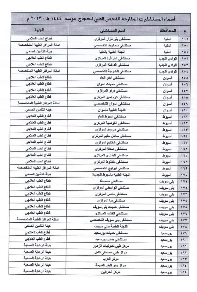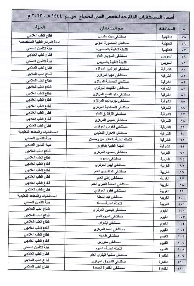 قائمة بأهم مستشفيات الكشف الطبي لموسم حج 2023 بالمحافظات