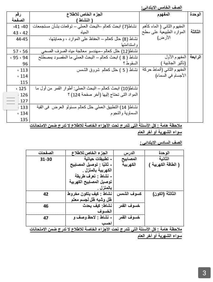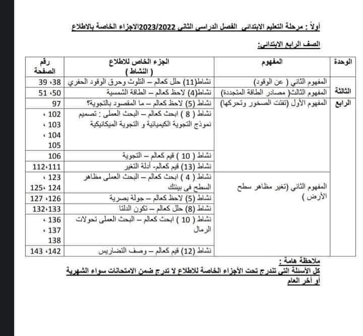 الدروس المخصصة للاطلاع فقط بمنهج العلوم من الرابع الابتدائى إلى الثاني الثانوى