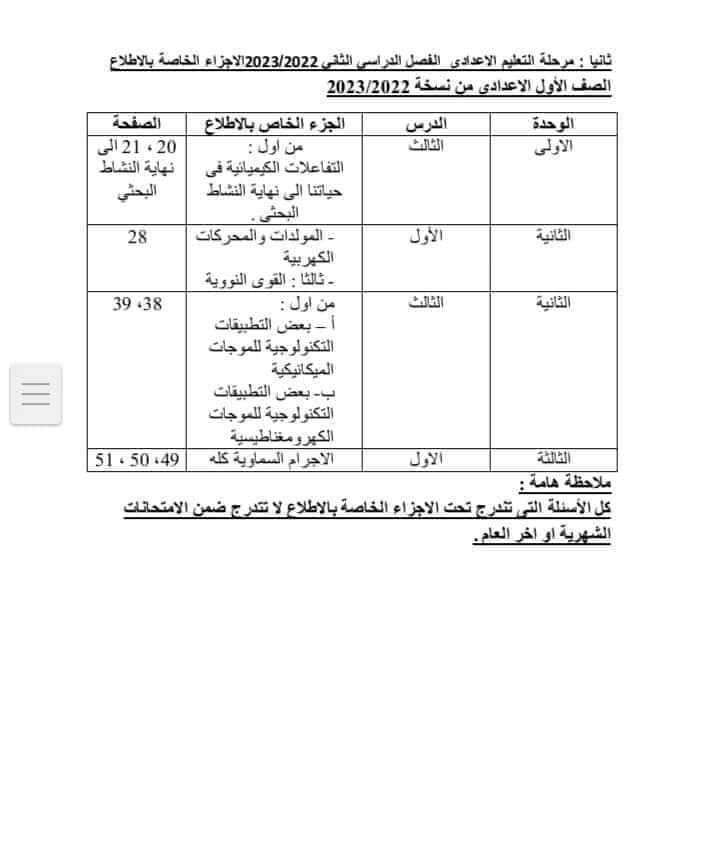 ووجهت وزارة التربية والتعليم والتعليم الفني، خطابا هاما وعاجلا إلى جميع مديريات التربية والتعليم على مستوى الجمهورية بشأن تحديد بعض الموضوعات للاطلاع فقط والتعلم الذاتي من الصف الثاني الابتدائي وحتى الثاني الثانوي لمنهج العلوم خلال الفصل الدراسي الثاني ٢٠٢٣.