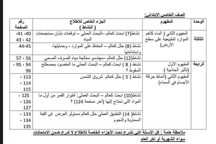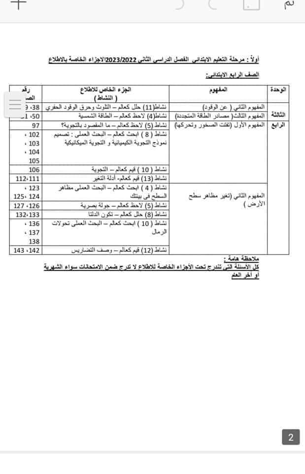 تخفيف مناهج الترم الثاني