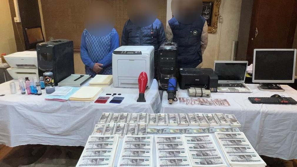 عقب تقنين الإجراءات، بالتنسيق مع قطاع الأمن العام، ومديرية أمن الجيزة، تمكنت الأجهزة الأمنية من ضبط المتهم، وبتفتيش مسكنه عثر على العديد من حقائب السفر المختلفة الممتلئة بالنقود المزورة وذلك على النحو التالي «مبلغ 2 مليون دولار أمريكي من فئة المائة دولار «مقلدة»، عدد كبير من الورق الأبيض فى حجم المائة دولار أمريكي «معدة للتزوير»، مطبوع عليها شريط الضمان والعلامة المائية للدولار، بما يعادل 2 مليون دولار تقريبًا، مبلغ مالي مصري مقلد».