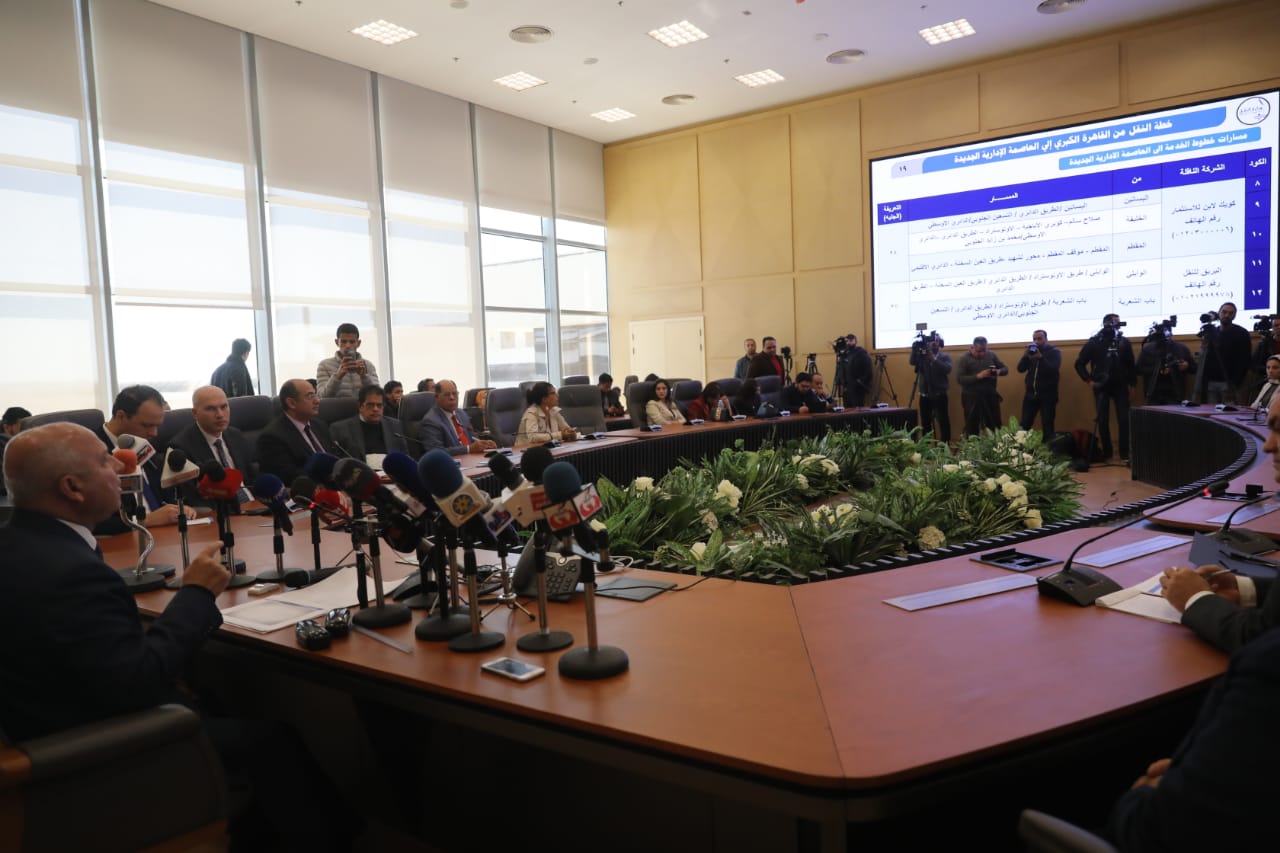 عقد الفريق مهندس كامل الوزير – وزير النقل اليوم مؤتمرا صحفيا بمقر وزارة النقل بالعاصمة الإدارية الجديدة لتعريف الموظفين المنتقلين إلى العاصمة الإدارية لمنظومة النقل إلي الحي الحكومي.