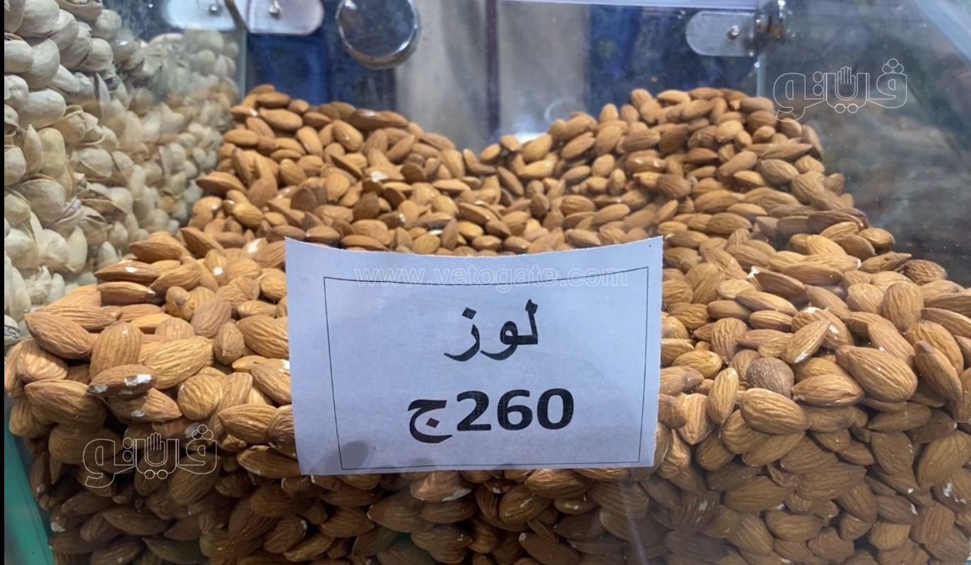 اللوز قلب جامبو أمريكي نوع 20-22 وزن كيلو بسعر 370 جنيها، لوز قلب امريكي نوع 27-30 وزن كيلو بسعر 280 جنيها، لوز اسباني وزن كيلو بسعر 260 جنيها، عين جمل امريكي اكسترا وزن كيلو 320 جنيها، عين جمل امريكي وزن كيلو 300 جنيه، عين جمل امريكي حصي وزن كيلو 170 جنيها، لوز امريكي حصي وزن كيلو 190 جنيها.