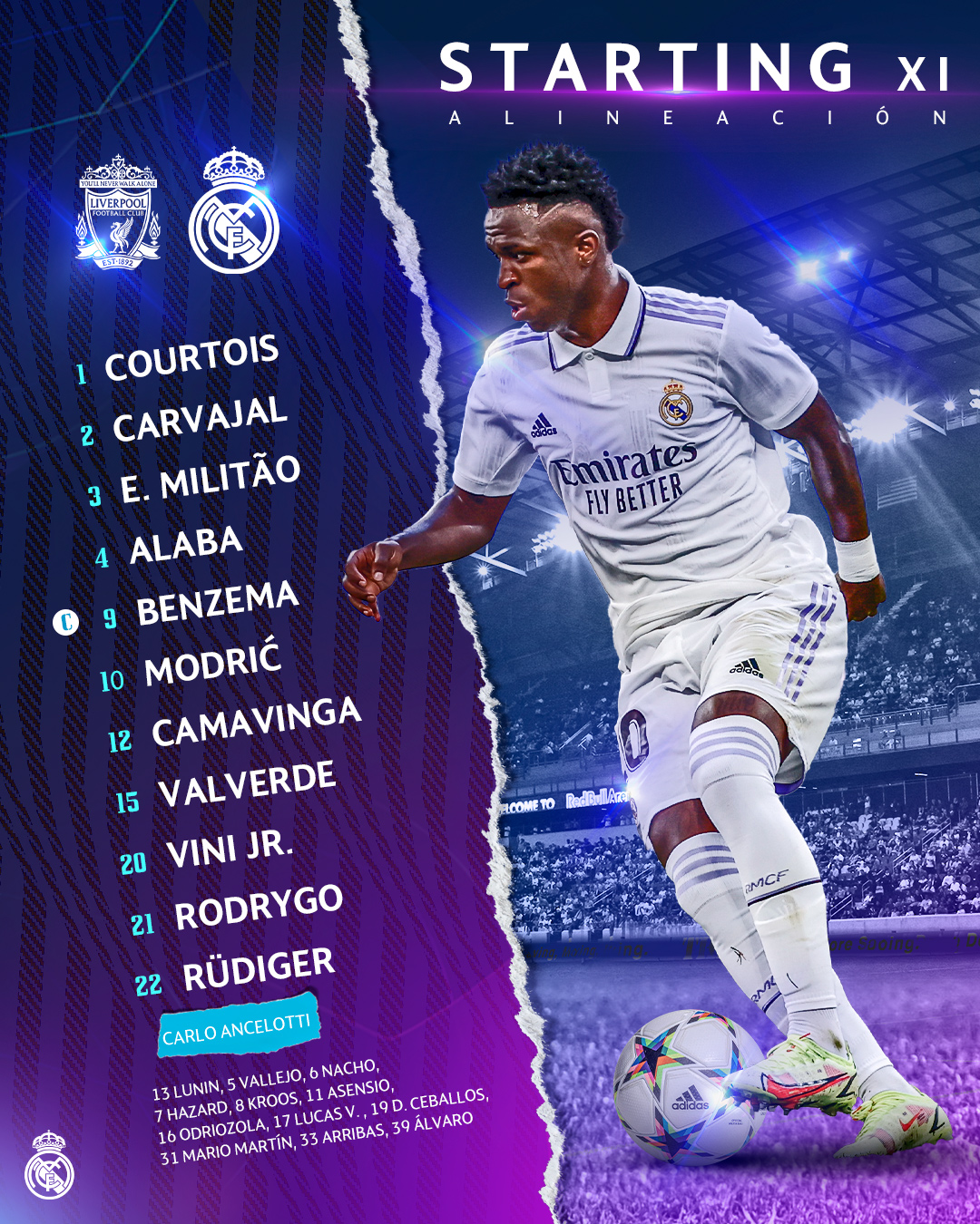 خط الهجوم: رودريجو - كريم بنزيما - فينيسيوس جونيور.