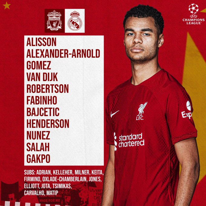 دوري أبطال أوروبا، كشف الألماني يورجن كلوب المدير الفني لفريق ليفربول عن تشكيل فريقه لمواجهة ضيفه ريال مدريد، مساء اليوم الثلاثاء، على ملعب أنفيلد، في ذهاب دور الـ16 لدوري الأبطال.