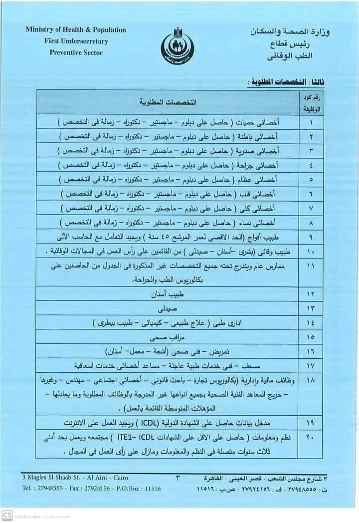 ٣- أن يكون المرشح على راس العمل ولم يحصل على أية اجازات بدون مرتب أو العمل جزء من الوقت او منتدب أو معار خارج وزارة الصحة والسكان ووحداتها أو هيئاتها أو الجهات التابعة لها خلال أخر خمس سنوات كما هو موضح بالاستعارة نموذج رقم (٢).