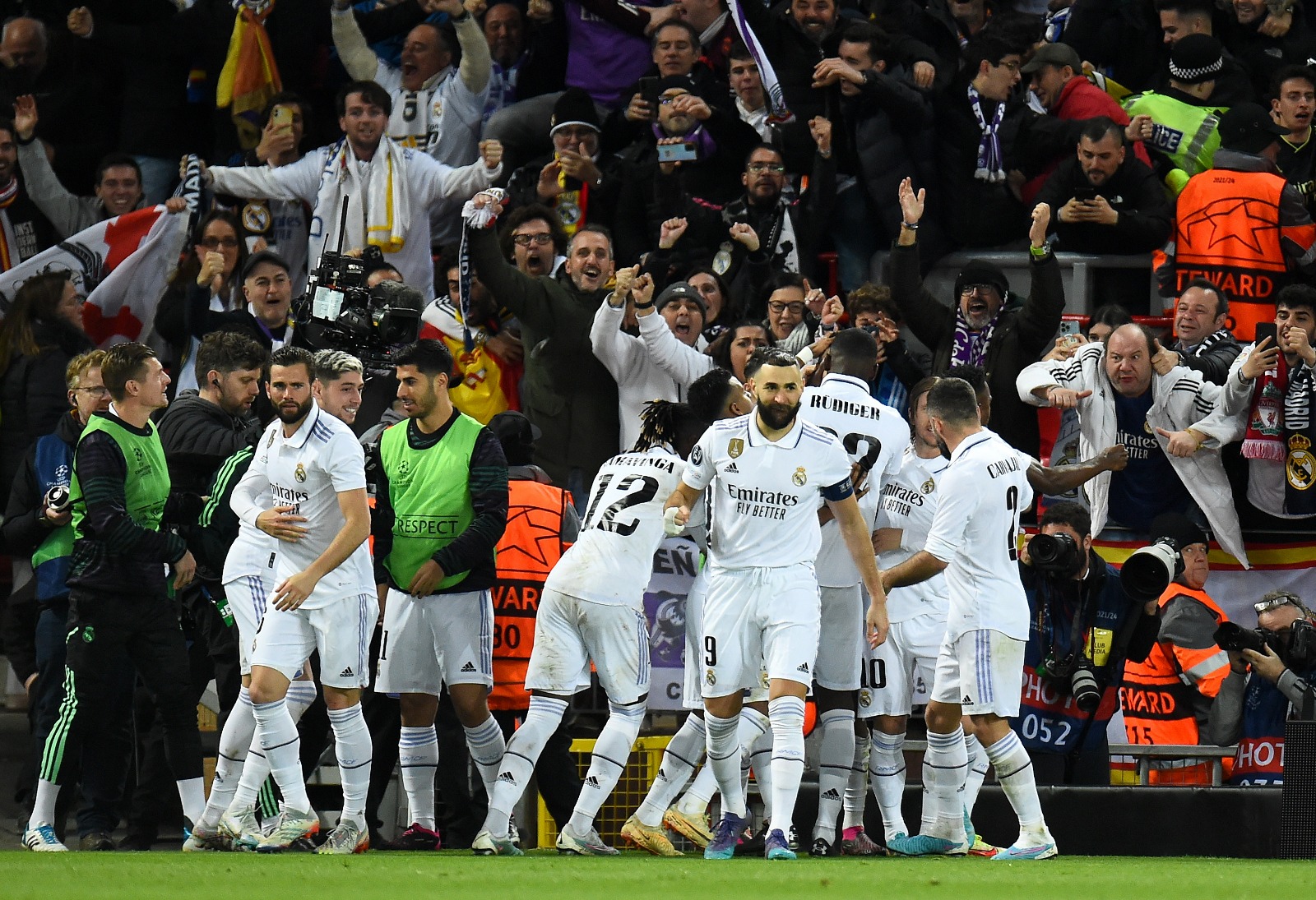 بنزيما يسجل هدف ريال مدريد الخامس في شباك ليفربول