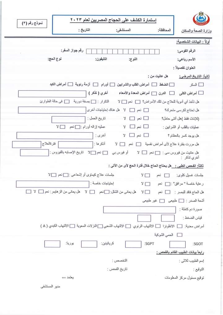استمارة الكشف الطبي على الحجاج المصريين لعام 2023