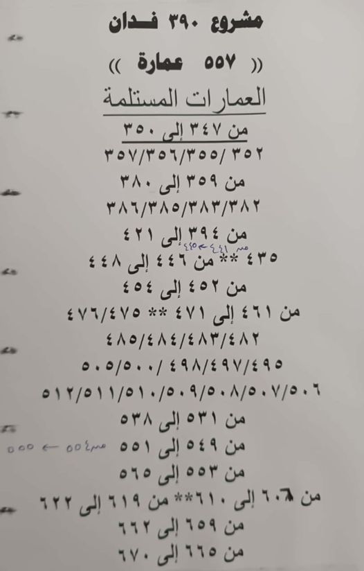وحدد الجهاز أرقام العمارات المعنية كالتالي: