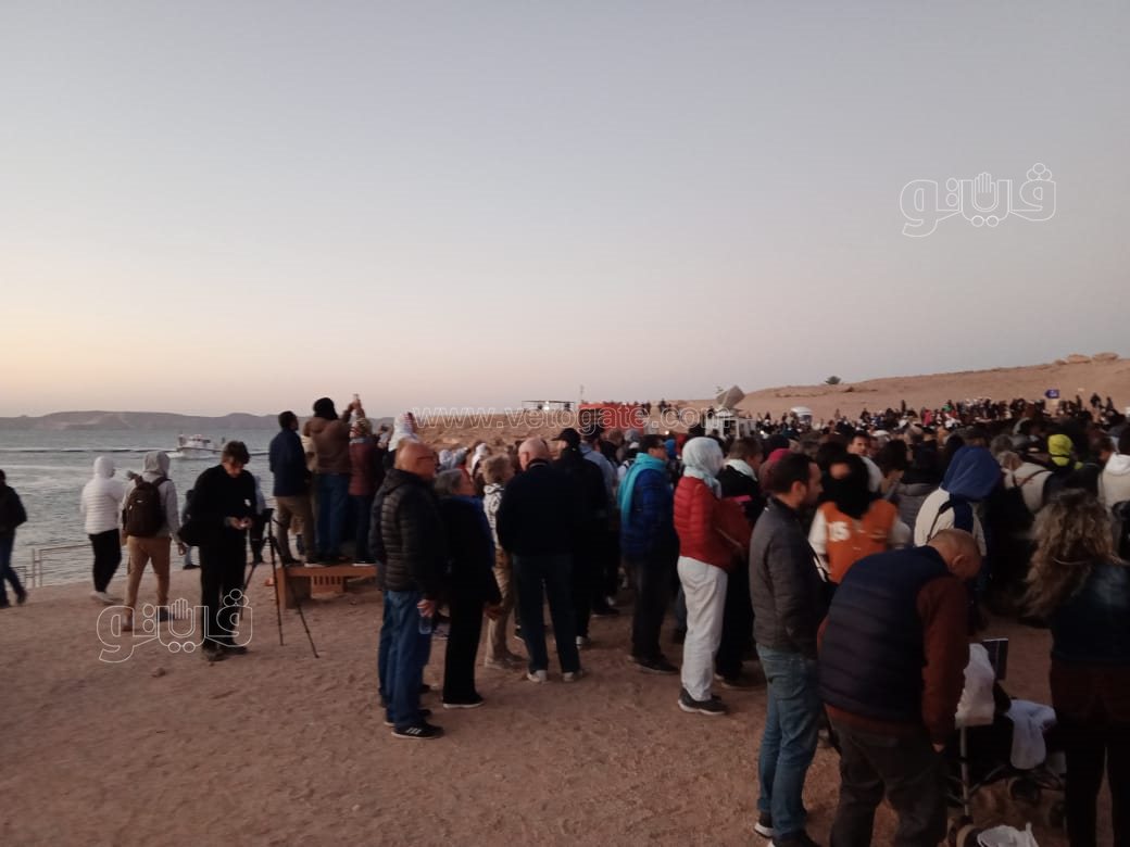 توافد الزائرين من الجنسيات المختلفة على معبدي رمسيس الثاني بمدينة أبو سمبل في أسوان لحضور ظاهرة تعامد الشمس على وجه رمسيس والتي تتكرر مرتين خلال العام في شهر أكتوبر وفبراير.