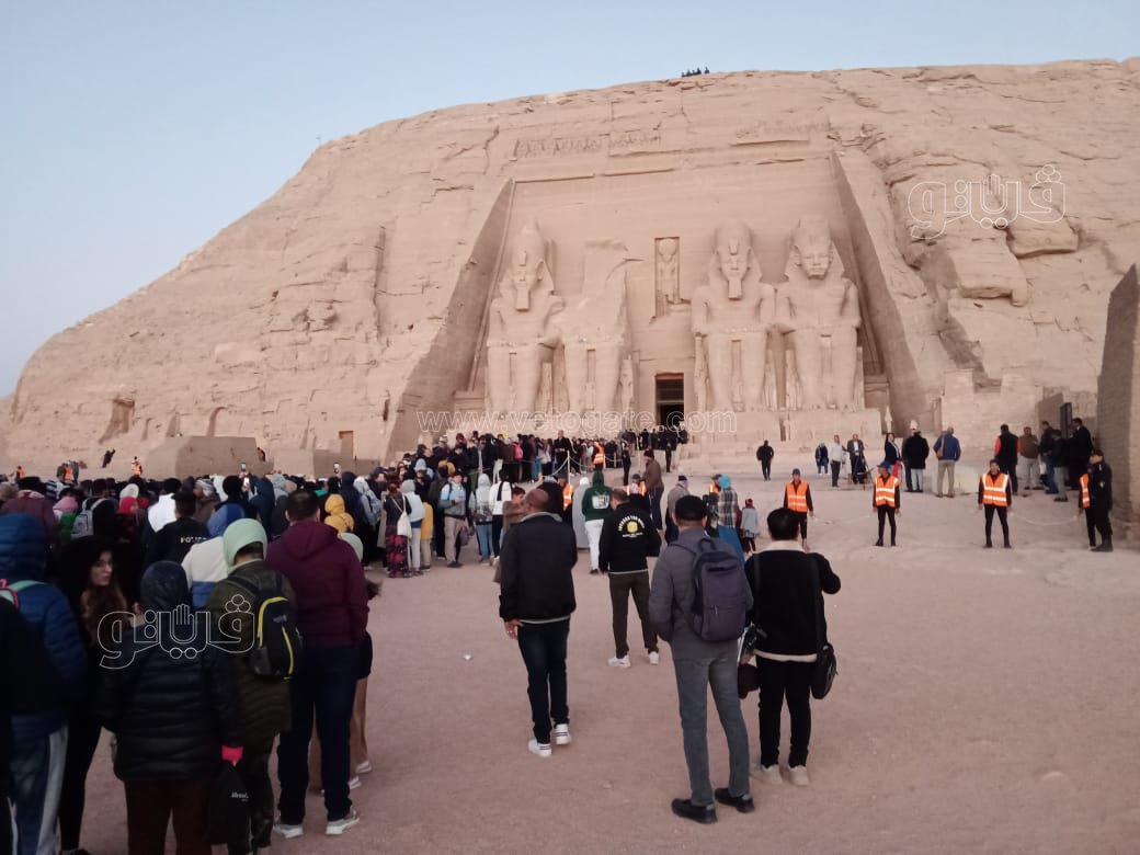توافد الزائرين على معبدي رمسيس بأبو سمبل لمشاهدة ظاهرة تعامد الشمس (فيديو وصور)