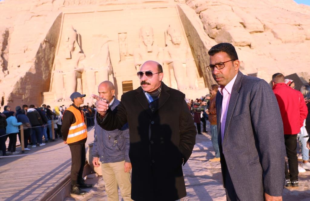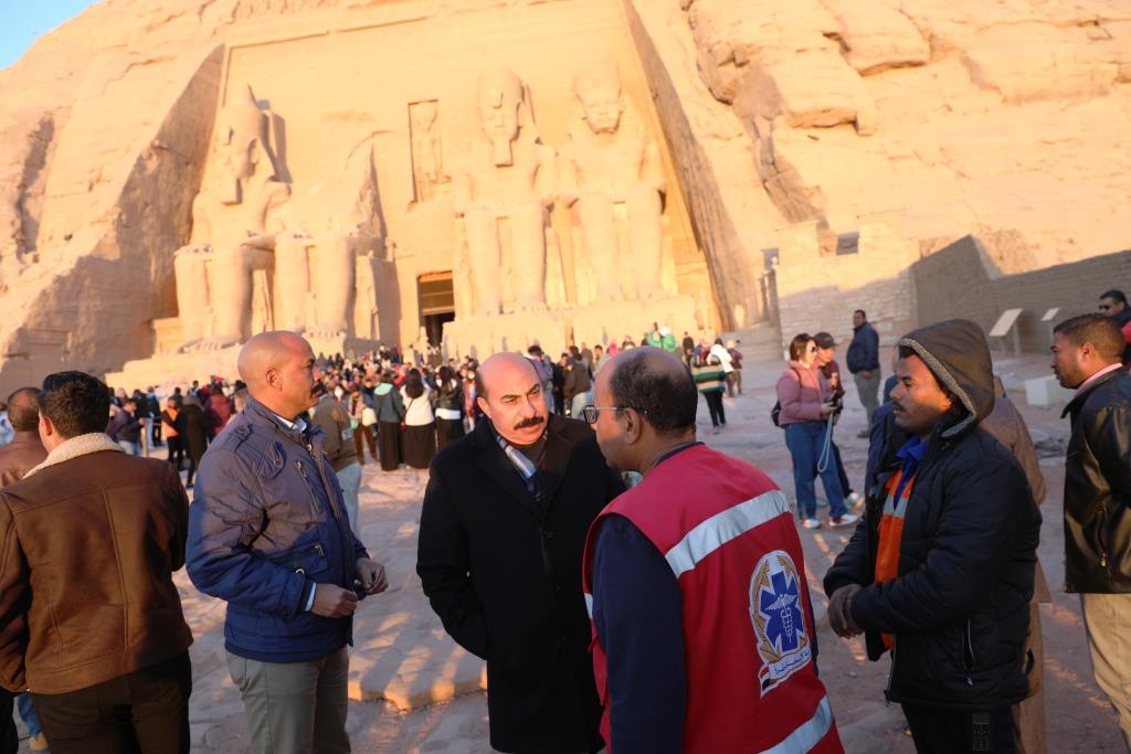ومن جانبه أكد اللواء أشرف عطية أن المحافظة بالتنسيق مع مديرية الأمن، وزارات السياحة والآثار والطيران المدنى والثقافة حرصا على متابعة تطبيق كافة الإجراءات لتسهيل حركة دخول وخروج المشاهدين لظاهرة تعامد الشمس، لافتًا إلى أنه تم توفير بوابات ومعدات التعقيم بمسارات الدخول والخروج، بجانب المستلزمات الطبية والمطهرات.