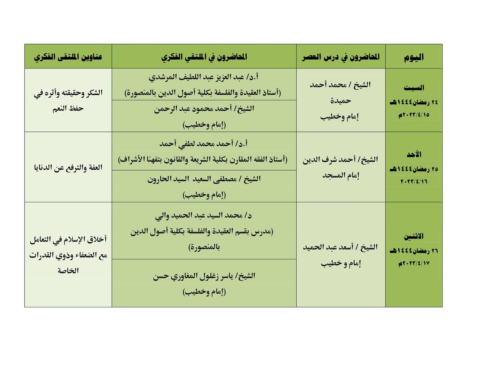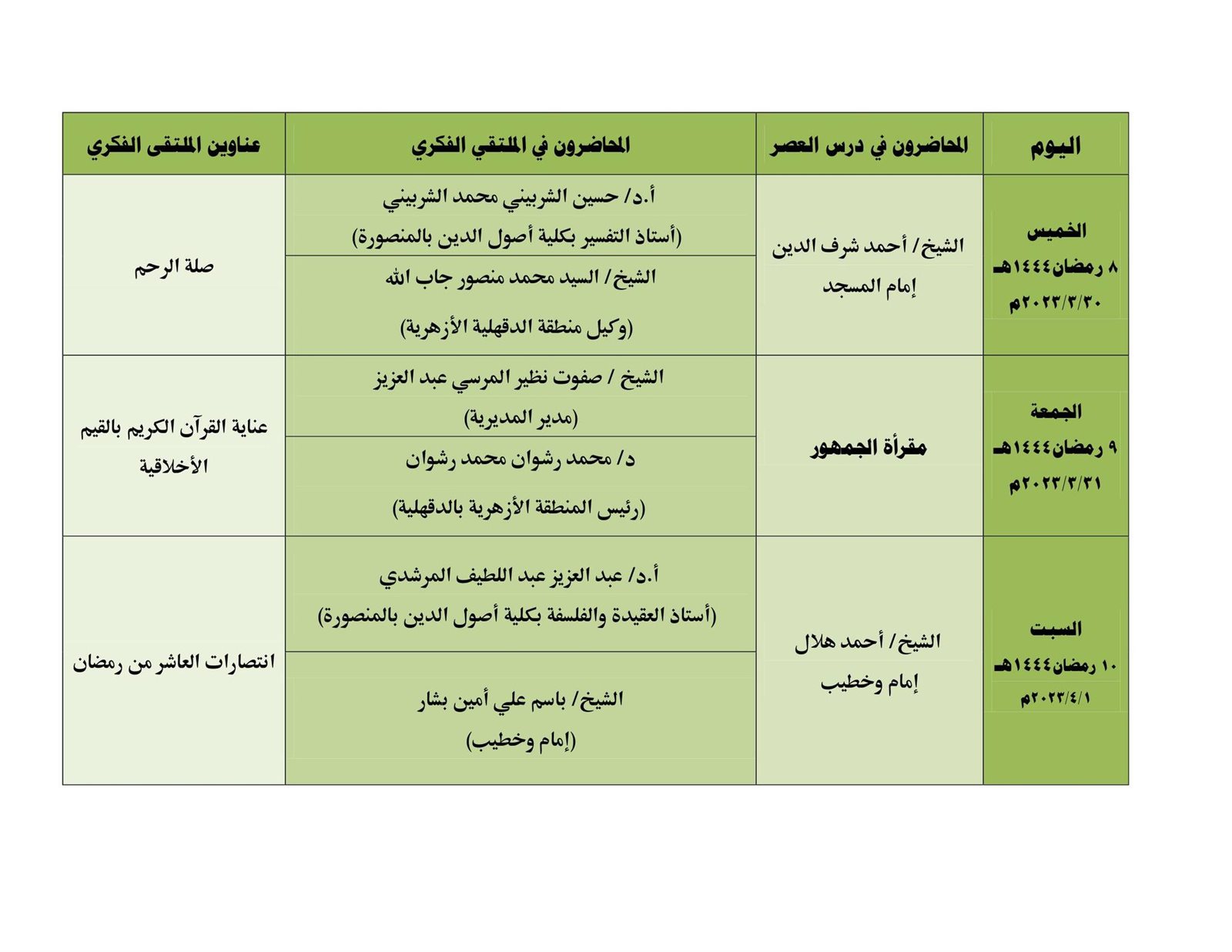 أسماء المشاركين بملتقى الفكر الإسلامي بالدقهلية