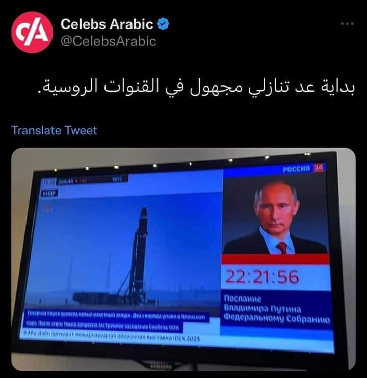 وجاء في التعليق المرافق على الصورة بداية عد تنازليّ مجهول في القنوات الروسية.