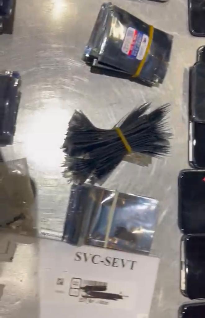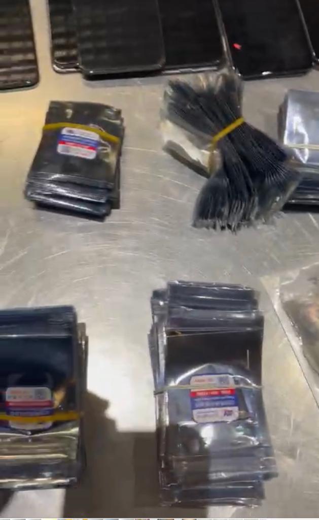 بتفتيش حقائب الراكب يدويا مما أسفر عن وجود كمية من التليفونات المحمولة ومستلزماتها، قام أحمد علي السيد مدير الإدارة بتكليف لجنة مكونة من فادي نبيل والسيد موسي وحسام مجدي تحت اشراف توني فكري مدير الحركة، وذلك لجرد وتصنيف وتحريز المضبوطات التي بلغت ١٧ تليفون محمول و٣٧٤ "فلاتة" تليفون و٧٦ وحدة أخري من مستلزمات التليفون المحمول باجمالي ٤٦٧ وحدة.