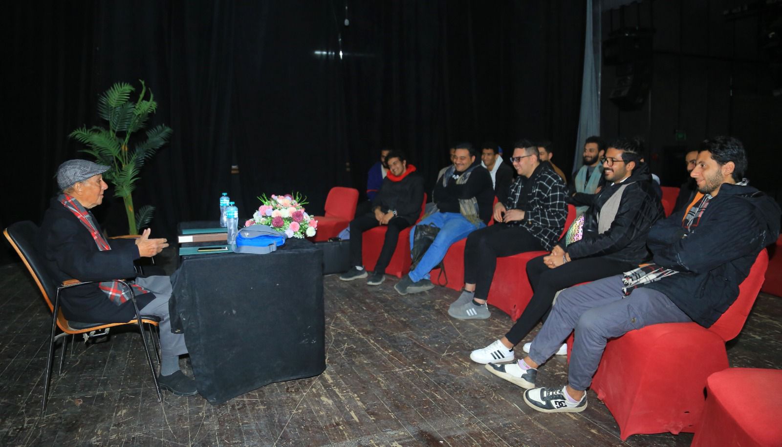 من جانبه تعرف المخرج سمير العصفوري على ما قدمه المخرجون الشباب خلال مشوارهم الفني القصير، وتحدث معهم عن بعض المدارس المسرحية العالمية والمذاهب الإخراجية، داعيا إياهم إلى البحث في تعريف هذه المدارس لتكوين فكرة عامة عن فلسفة عمالقة المسرح في العالم.