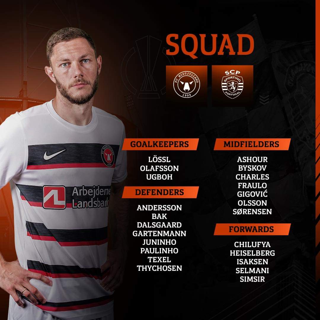 وتنطلق مباراة ميتيلاند الدنماركي ضد سبورتنج لشبونة في تمام الساعة الثامنة إلا ربع مساء بتوقيت القاهرة على ملعب أم سي ايتش في الدنمارك.