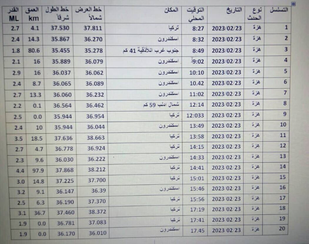 زلزال سوريا، أعلنت السلطات فى دمشق اليوم، عن تسجيل 24 هزة ارتدادية آخرهم ضرب مدينة أدلب بقوة 4.8 على مقايس ريختر.