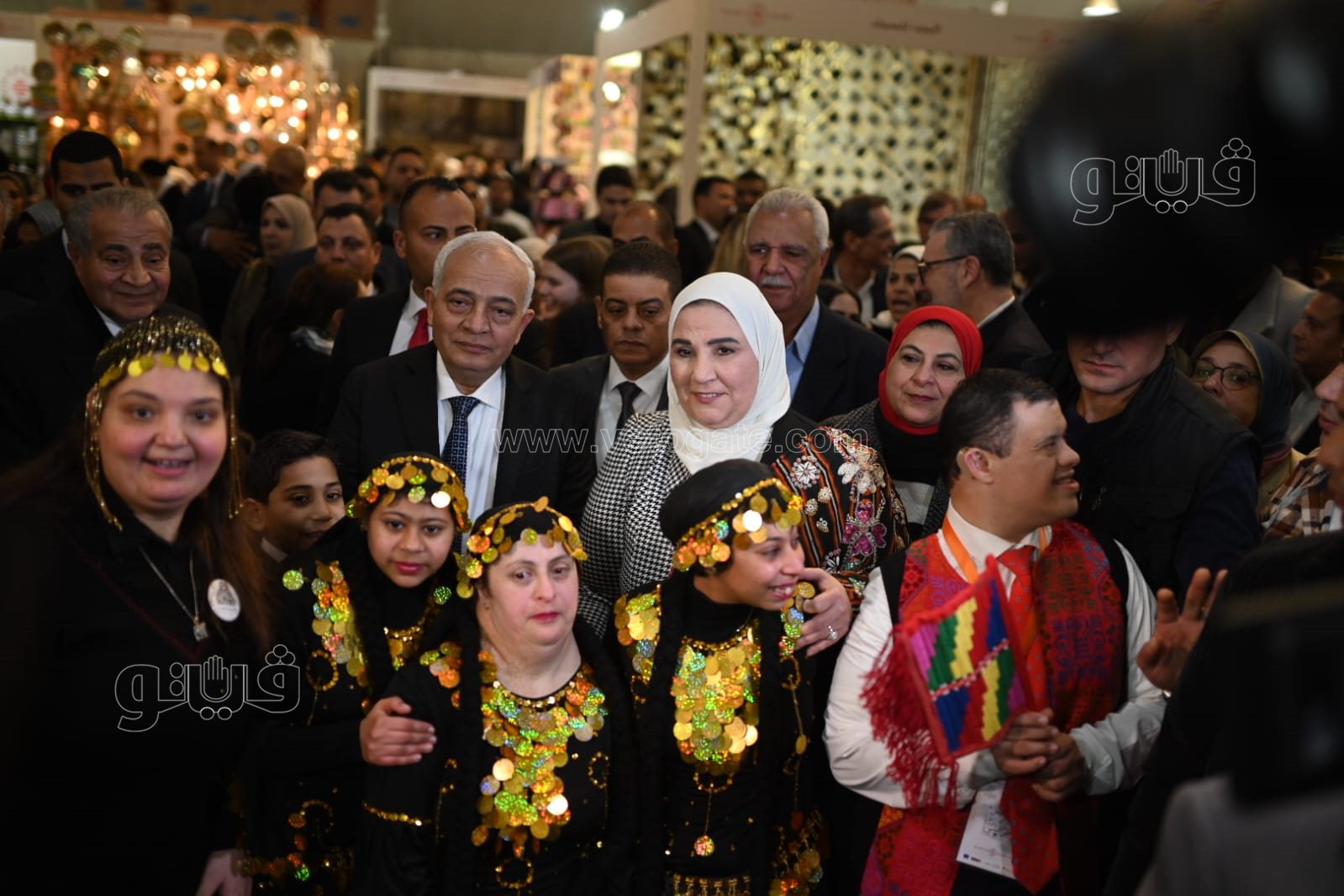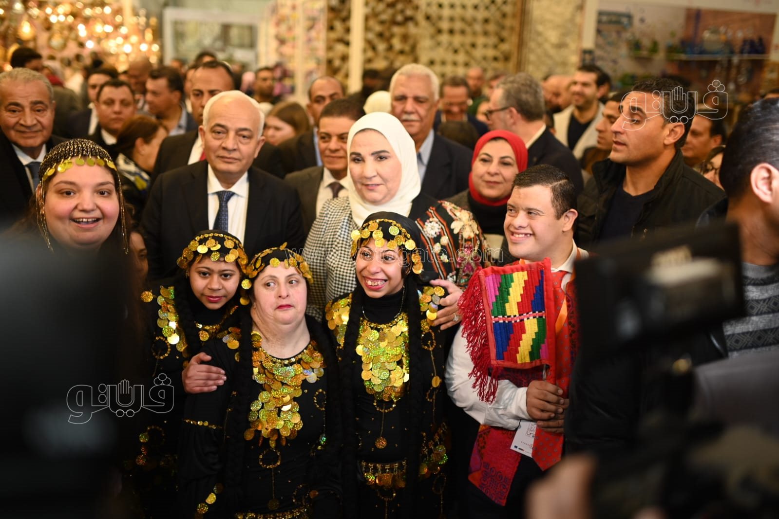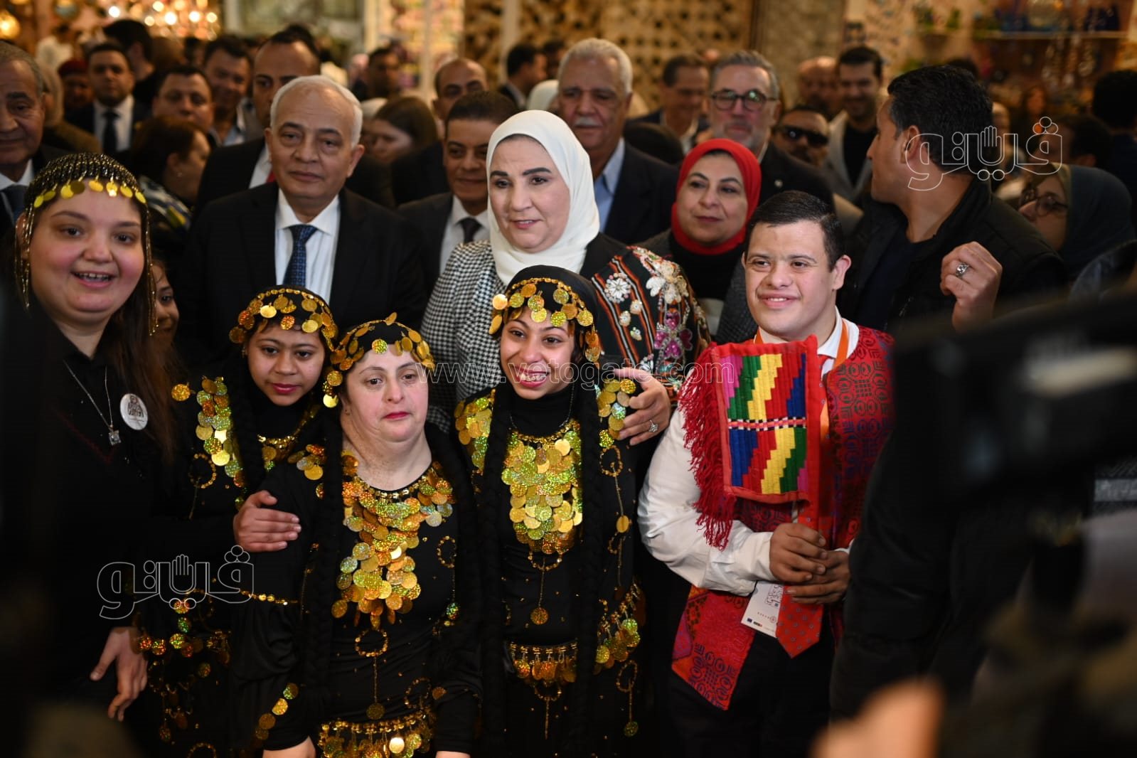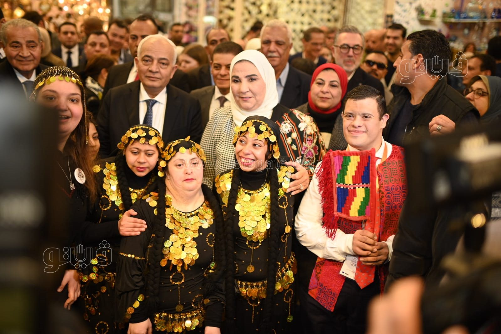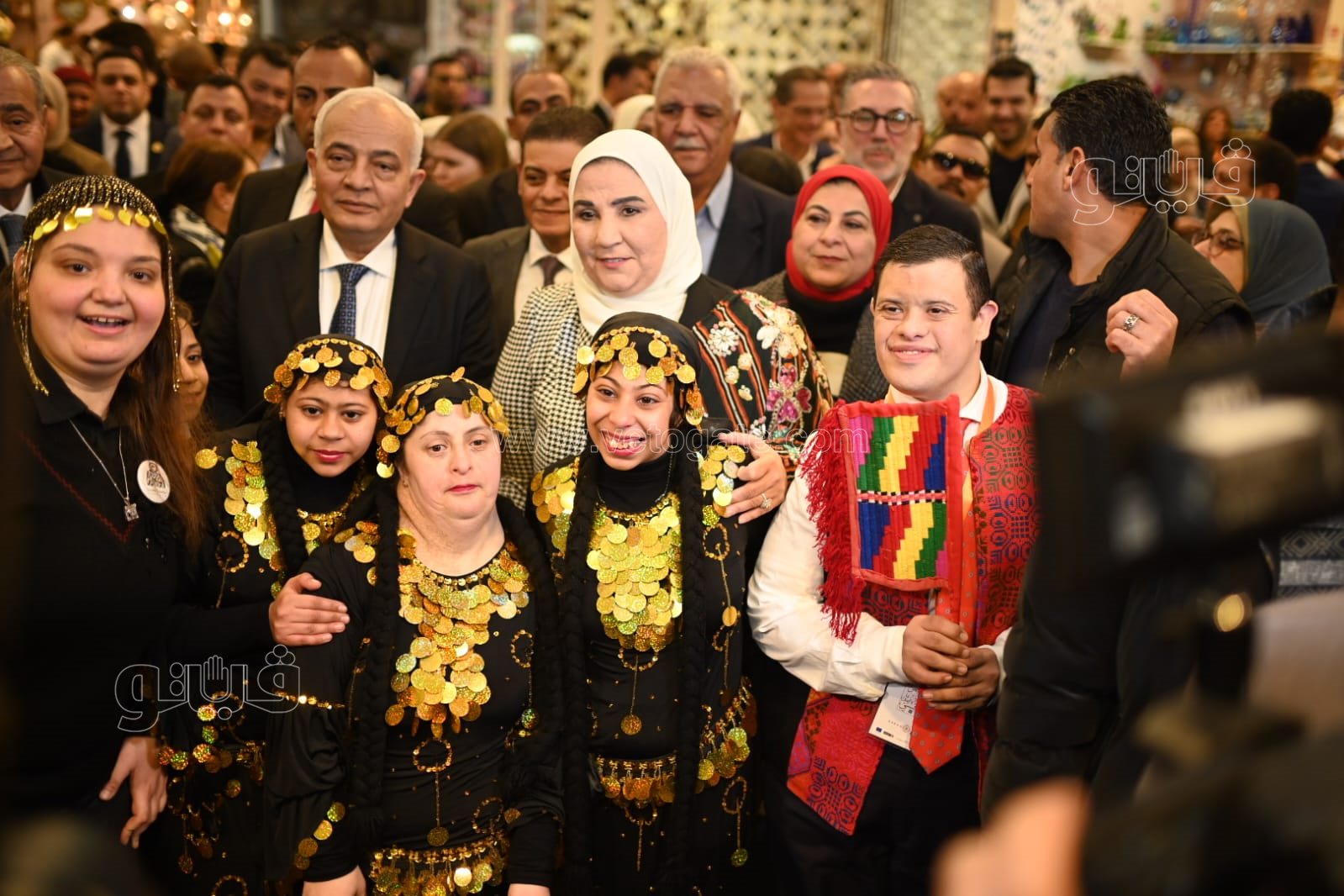 وزير التضامن تلتقط الصور التذكارية مع ذوي الاحتياجات الخاصة في معرض ديارنا (صور)