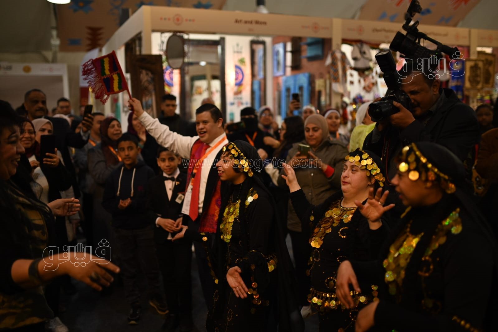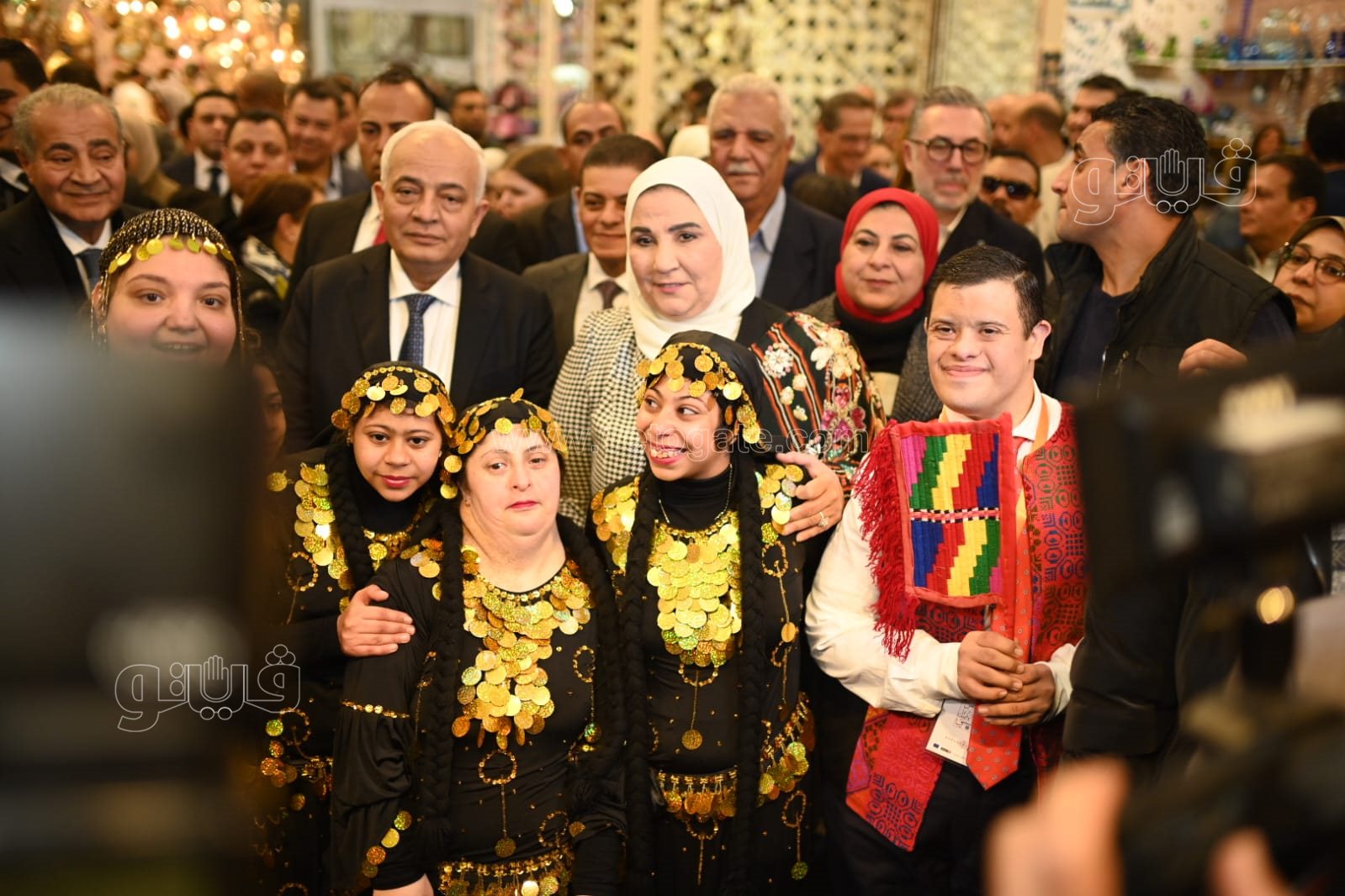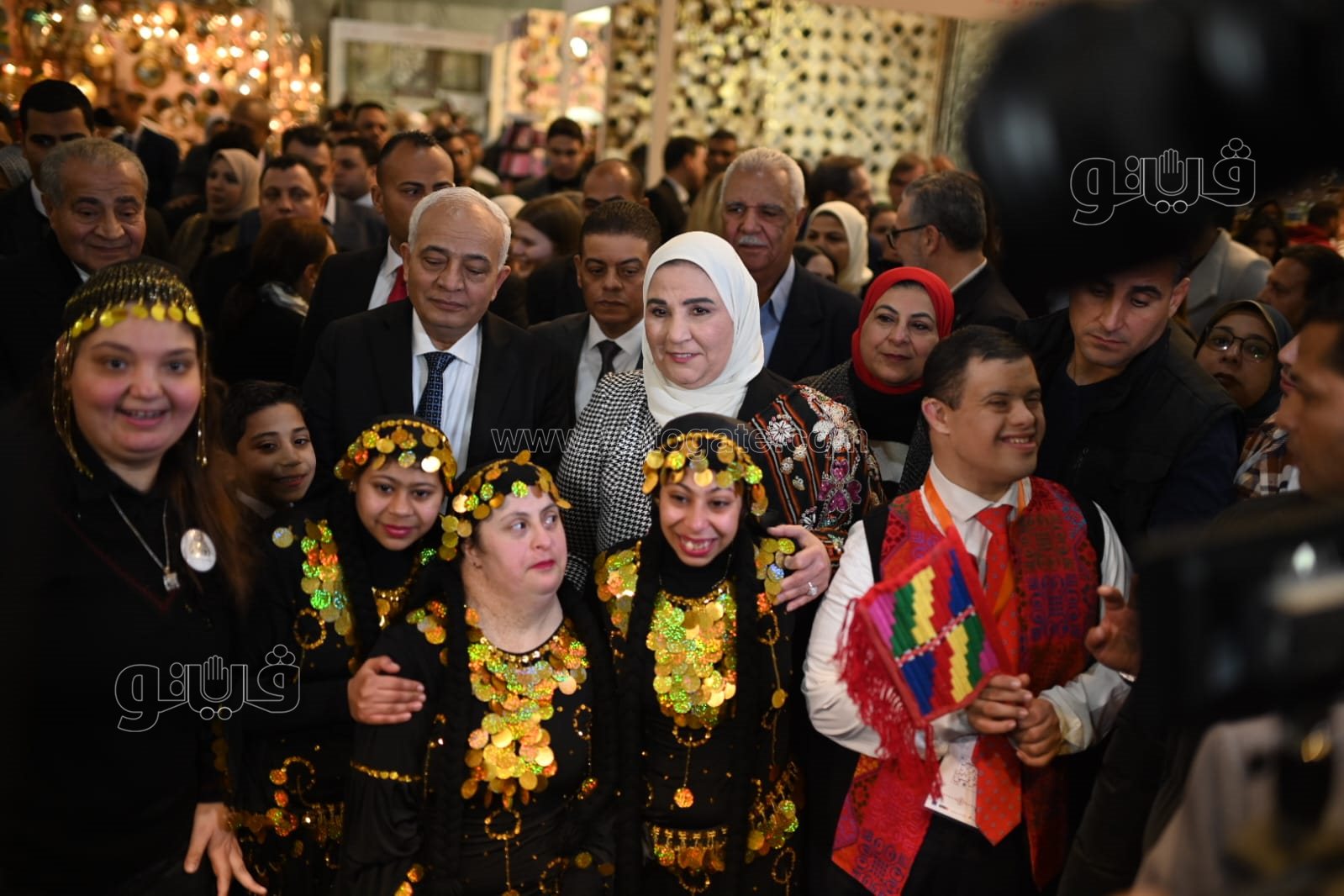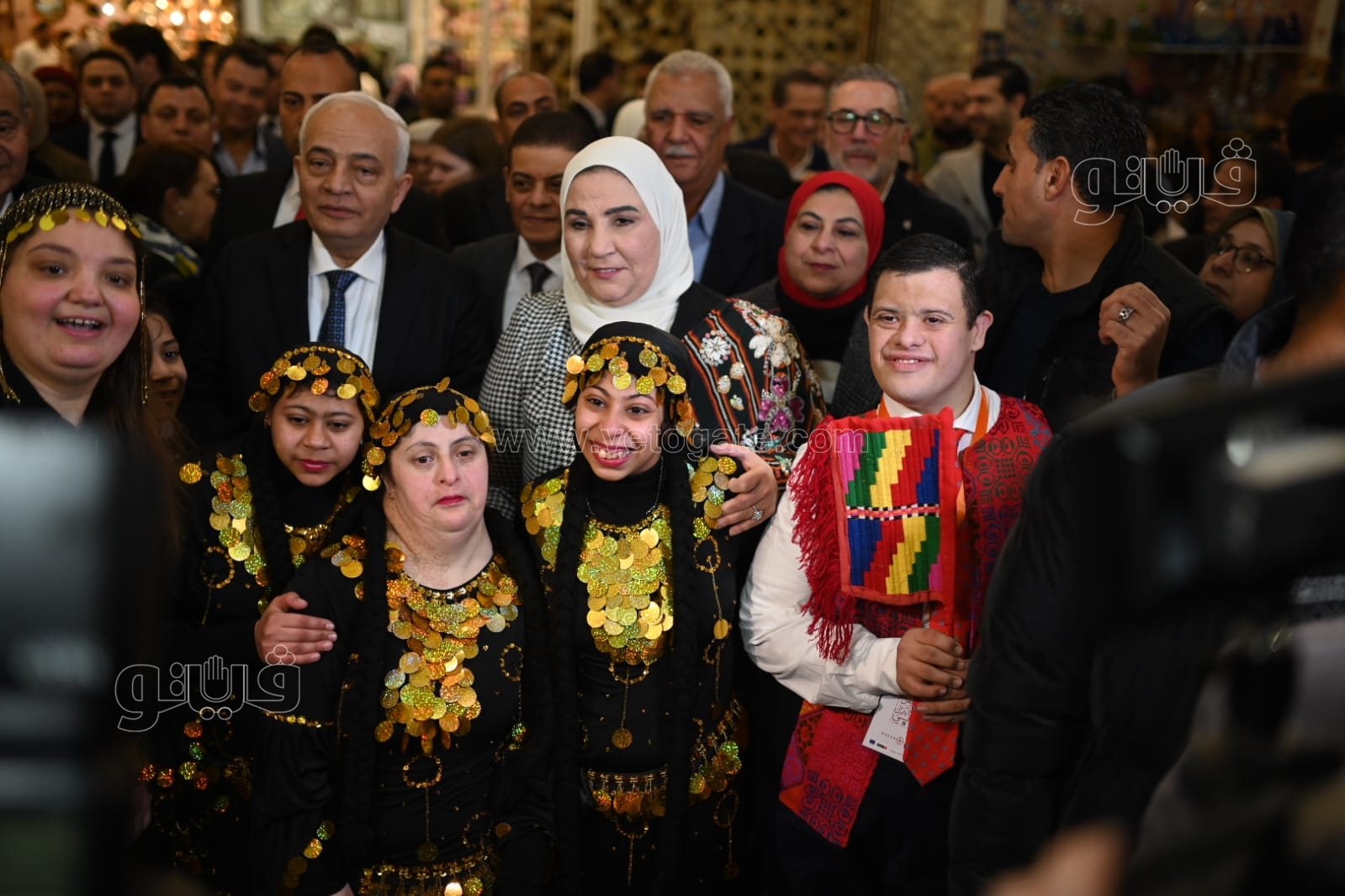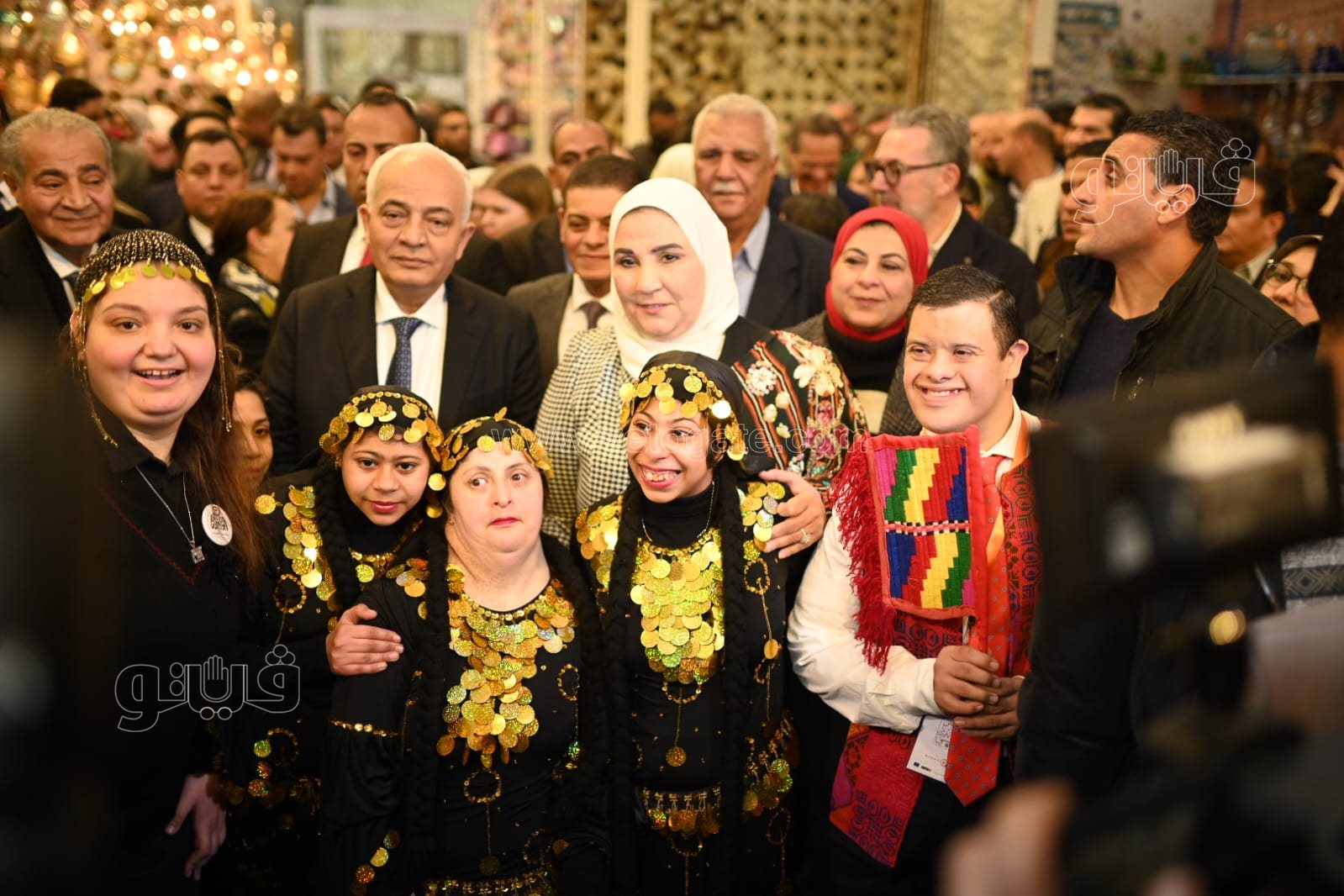 وزير التضامن تلتقط الصور التذكارية مع ذوي الاحتياجات الخاصة في معرض ديارنا (صور)