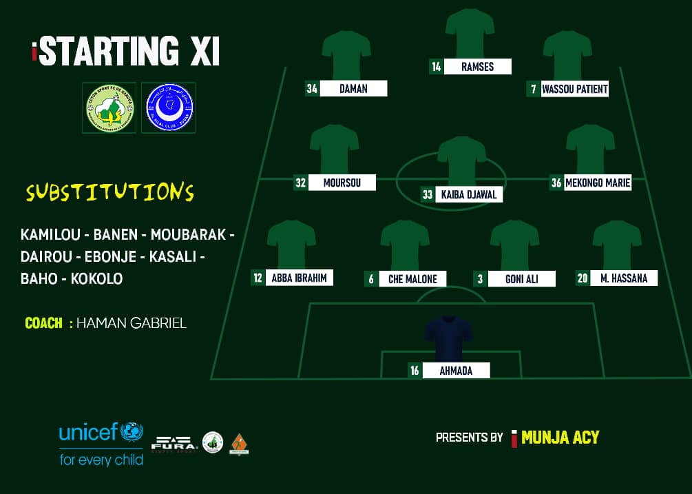 مجموعة الأهلي، أعلن جابريل هامان المدير الفني لفريق القطن الكاميروني عن تشكيل فريقه لمواجهة الهلال السوداني، مساء اليوم الجمعة، على ملعب رومدي أدجيا، في الجولة الثالثة من دور المجموعات لبطولة دوري أبطال أفريقيا، في المجموعة التي تضم أيضا فريقي الأهلي وصن داونز.