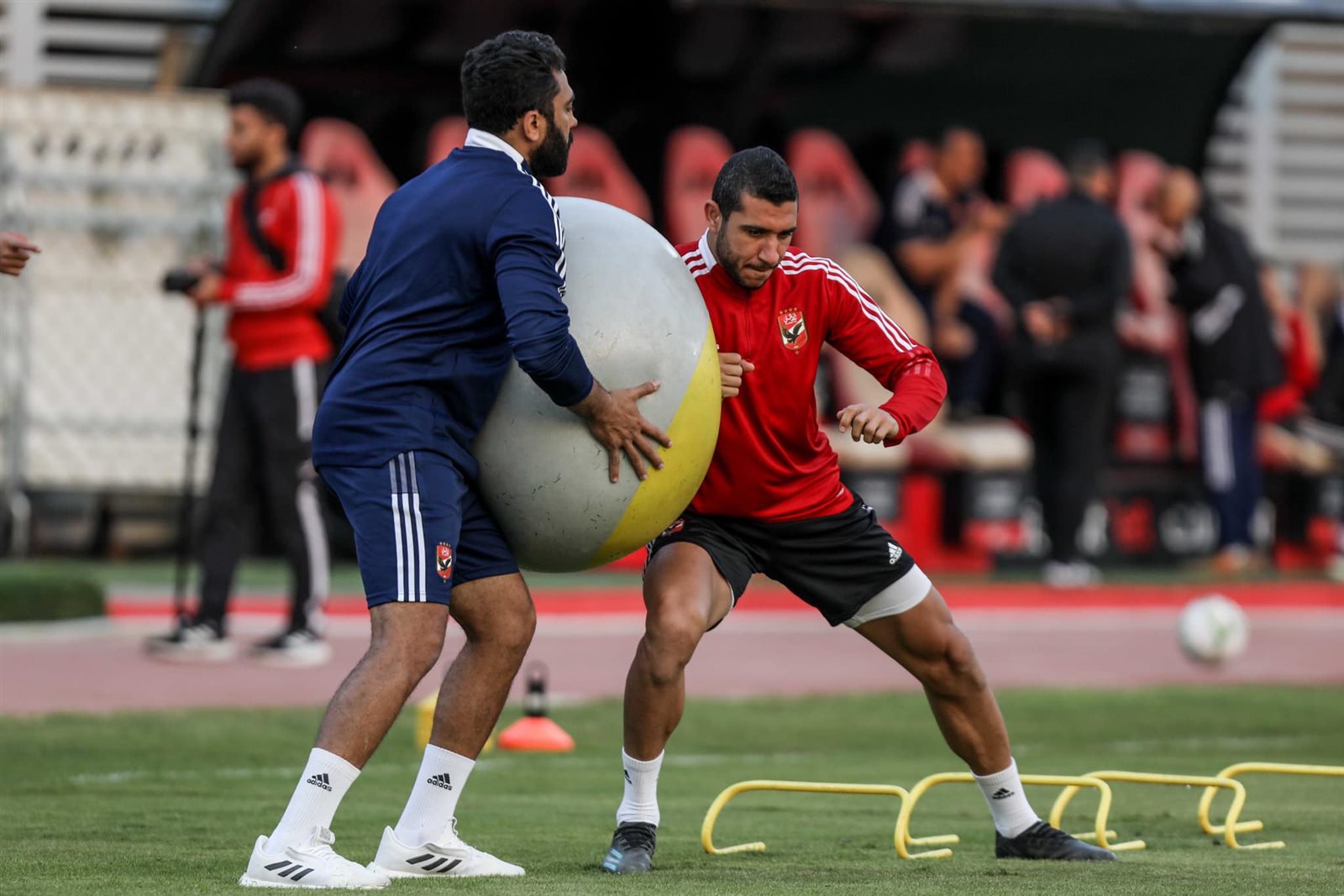 وعاد الفريق الأول لكرة القدم بالنادي الأهلي للمران على ملعب التتش بالجزيرة صباح اليوم الخميس بعد انتهاء الإصلاحات التي شهدتها أرضية ملعب التتش.